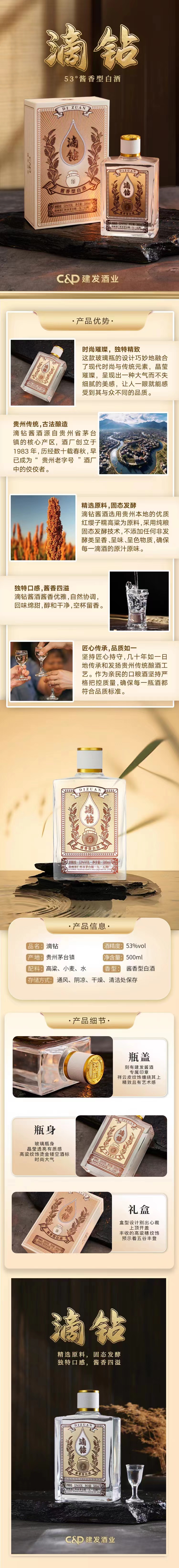 【仅供集采】滴钻酱香型53°高度白酒建发酒业纯粮酿造固态发酵500ml*6瓶 箱装