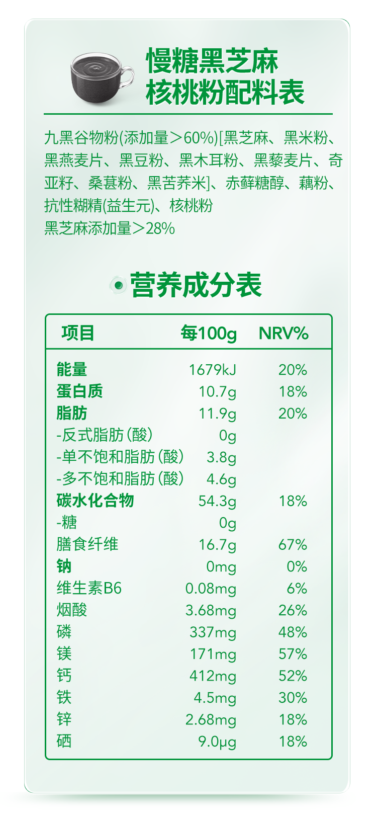 【积分兑换】慢糖黑芝麻核桃粉1罐 500g