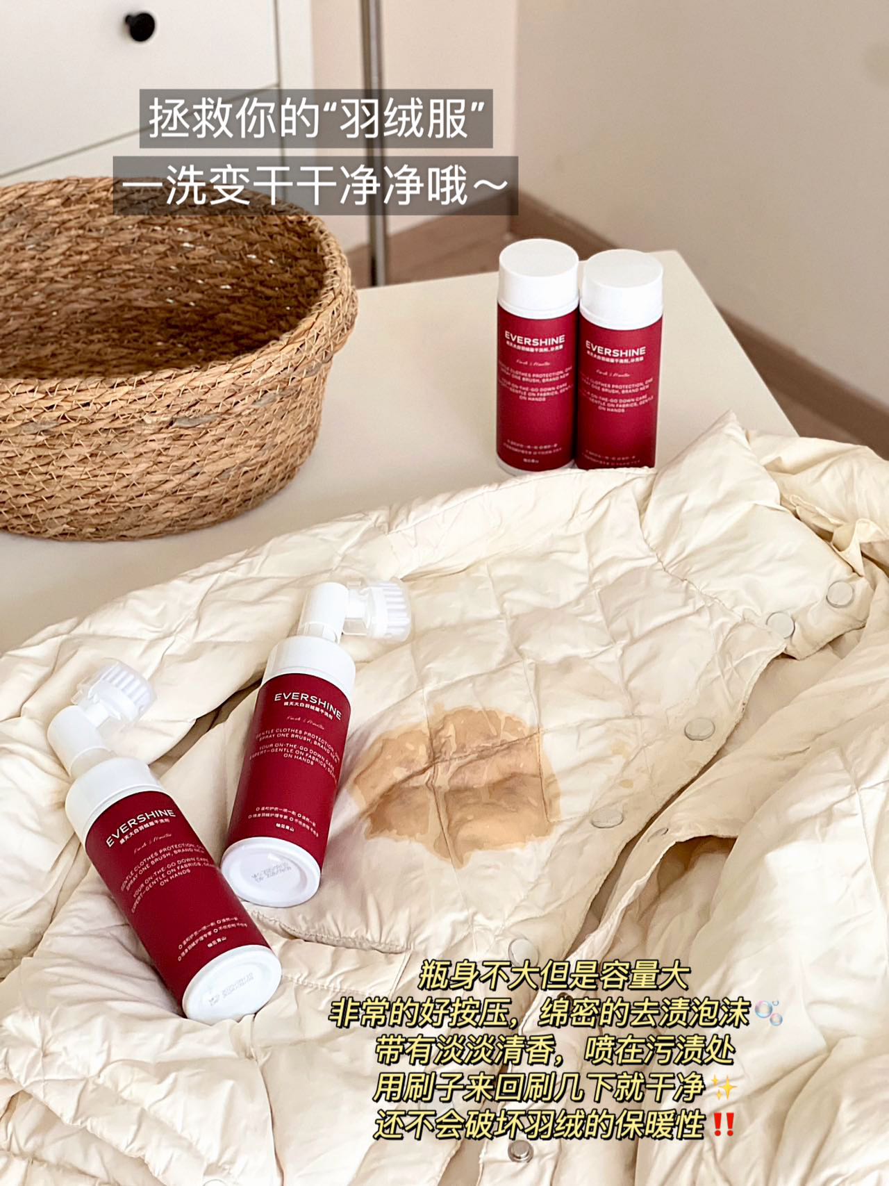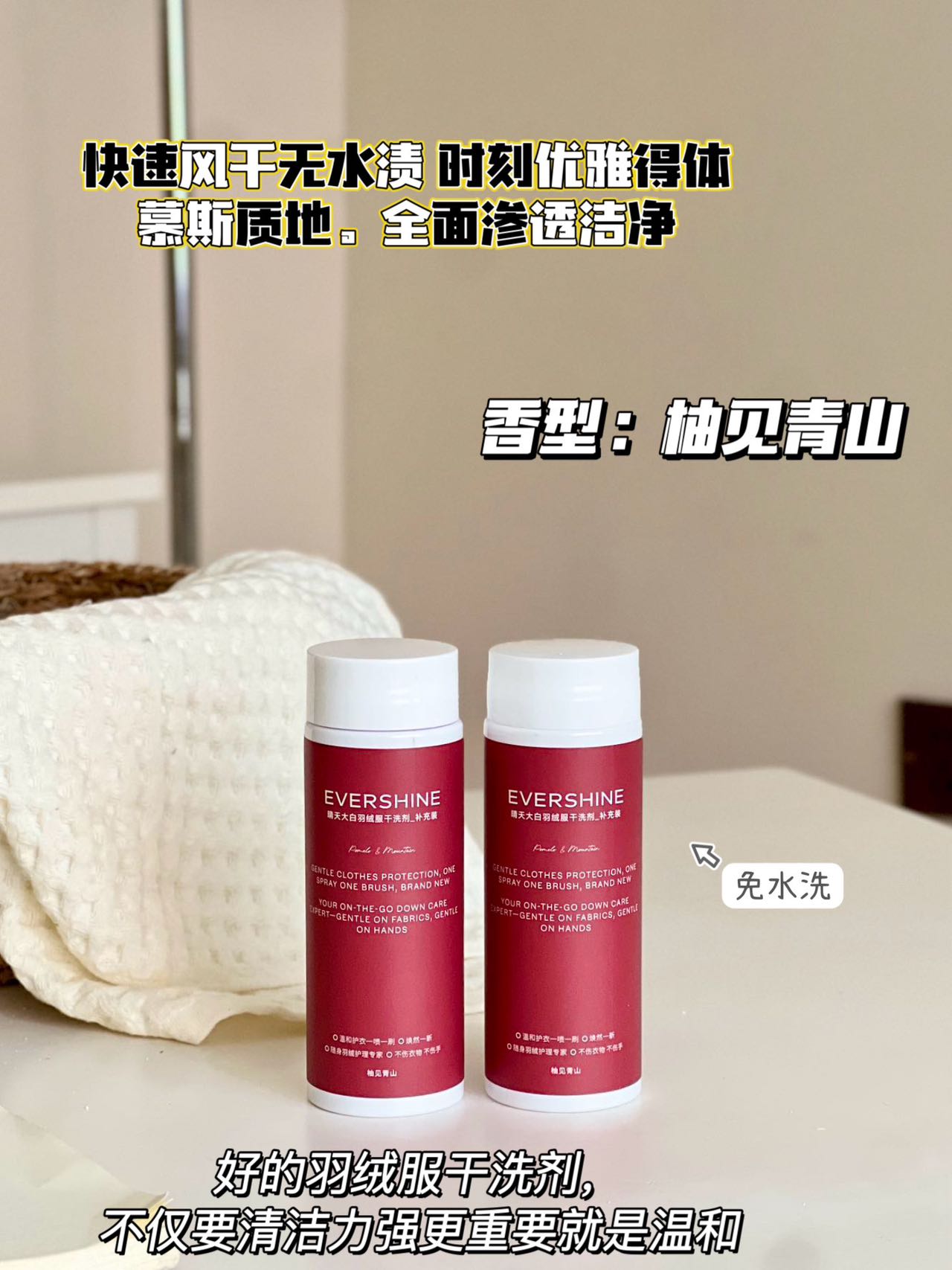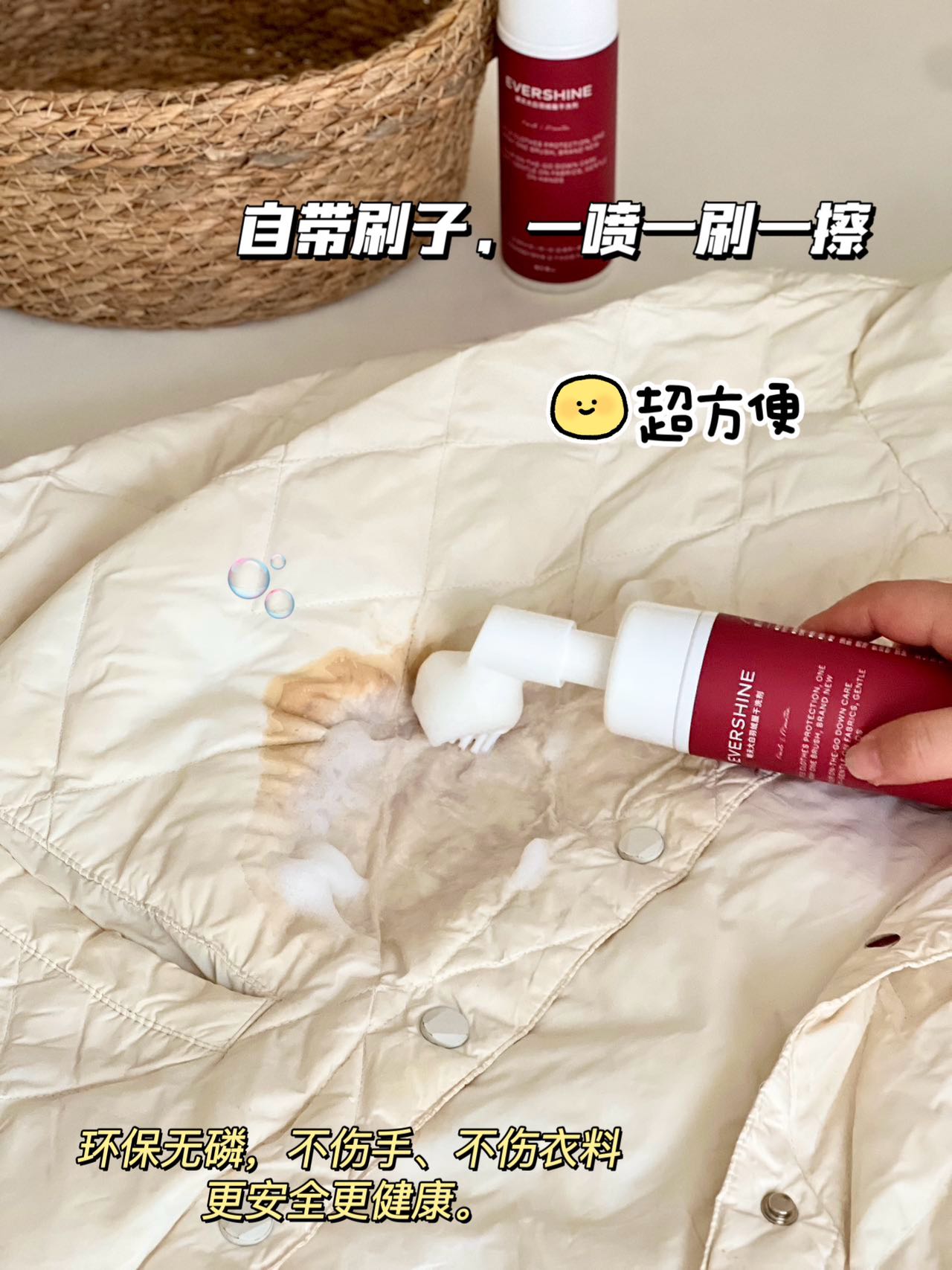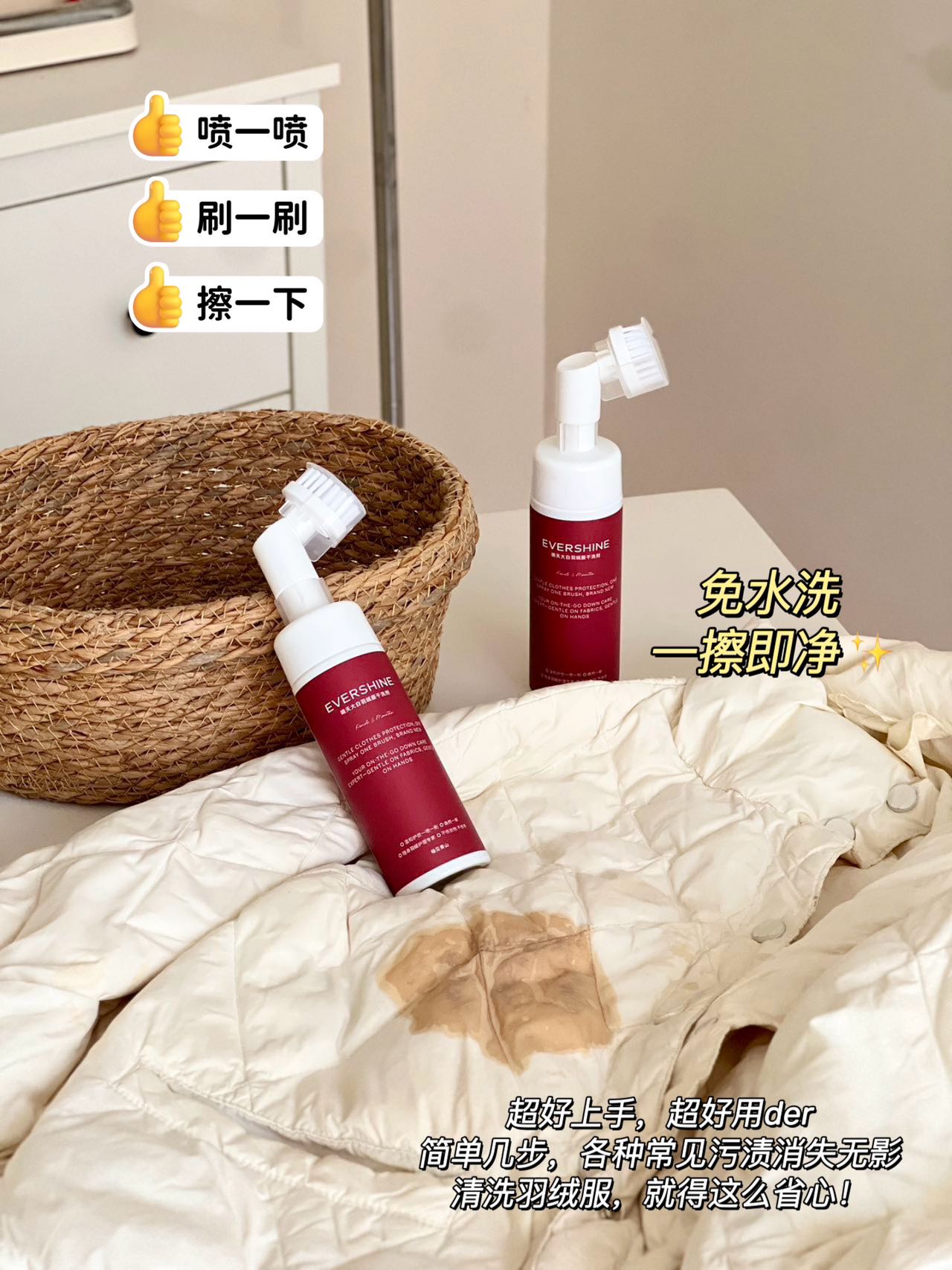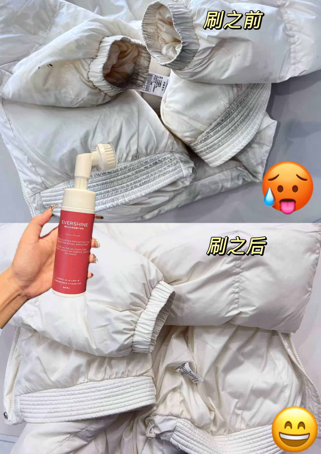 免水洗的羽绒服干洗剂🔥【EVERSHINE羽绒服清洁剂-柚见青山】自带软毛刷头,30秒干洗羽绒服不留痕❗️一喷一刷一抹省时省力,轻松还你全新羽绒服👍