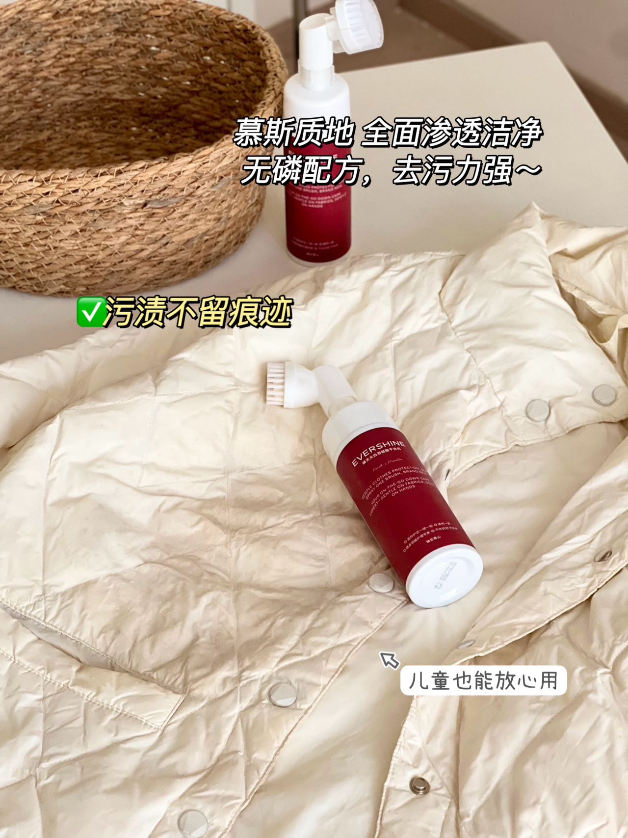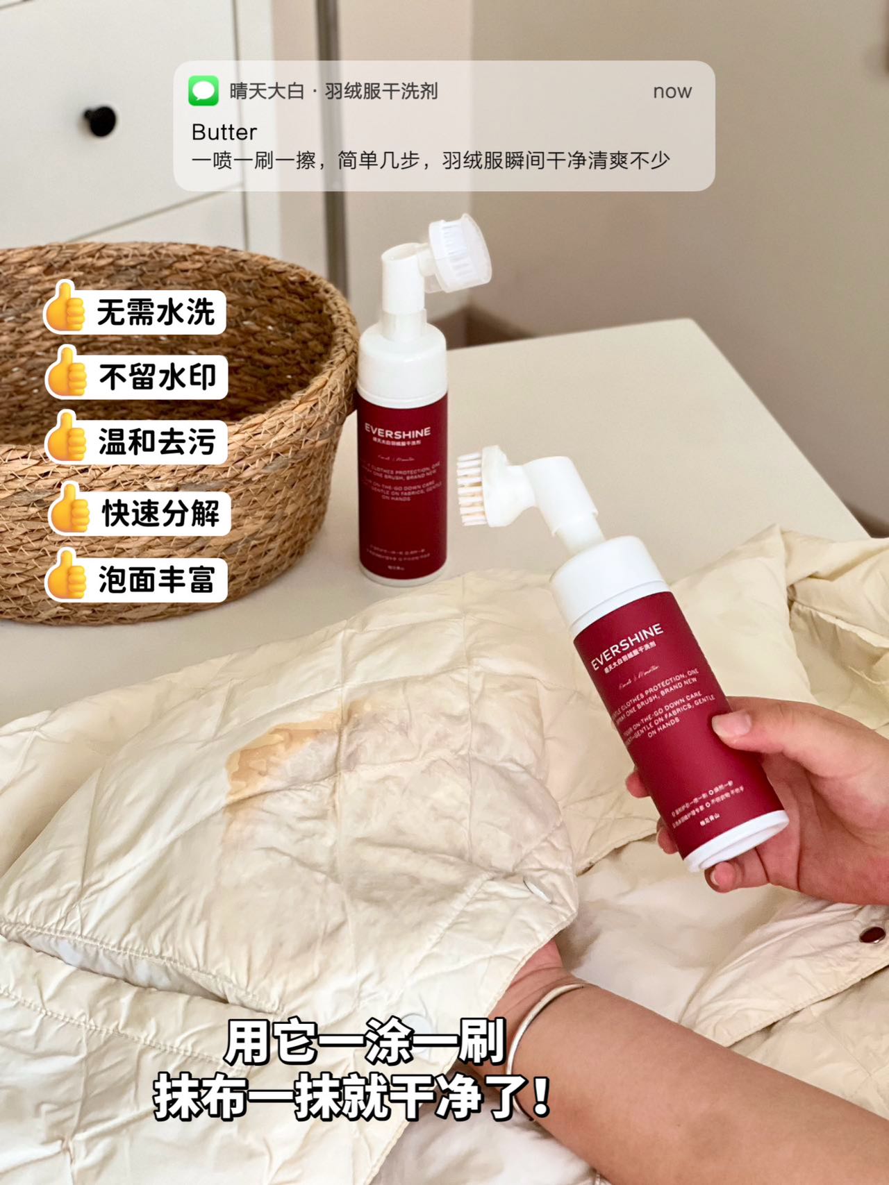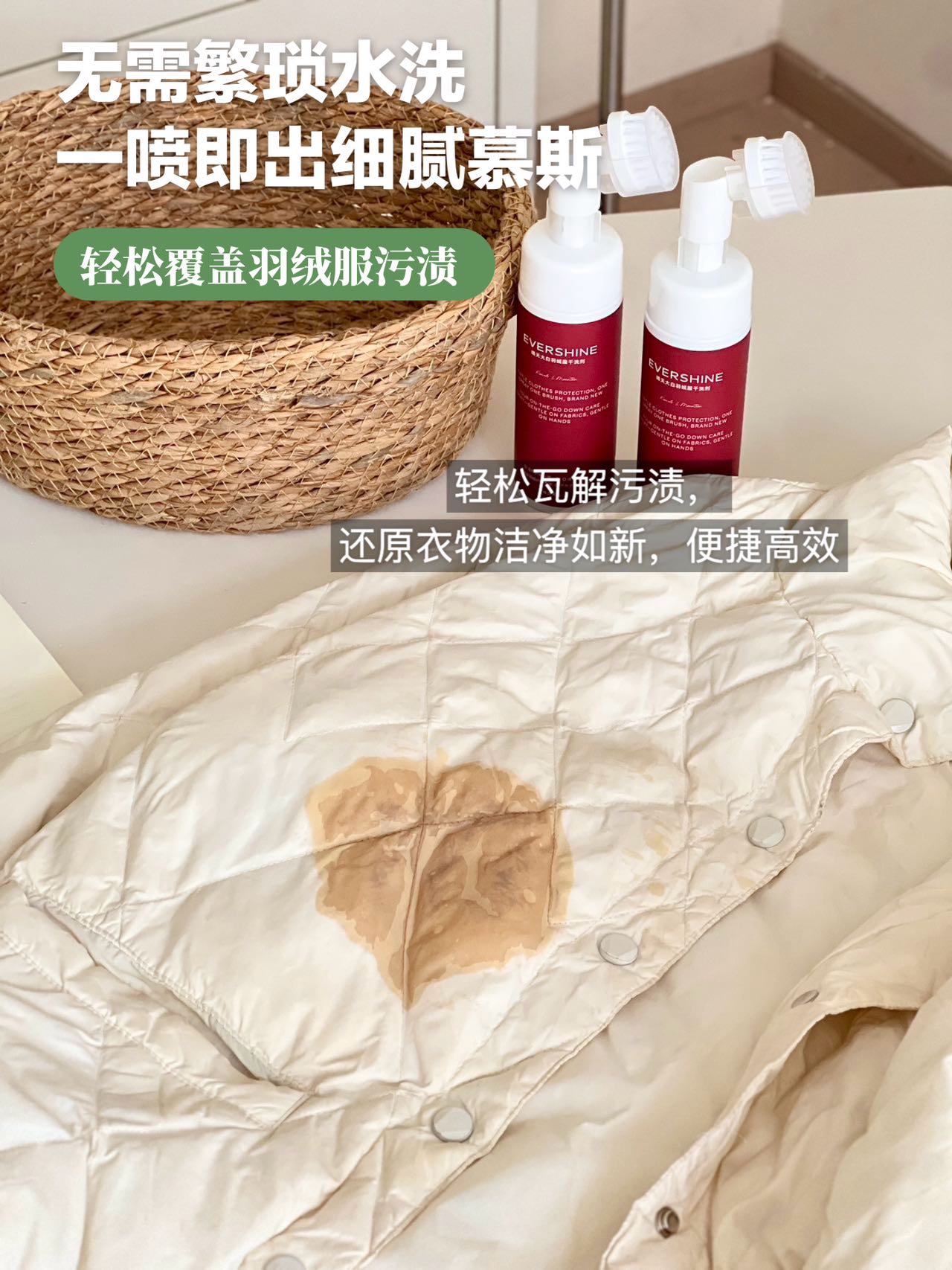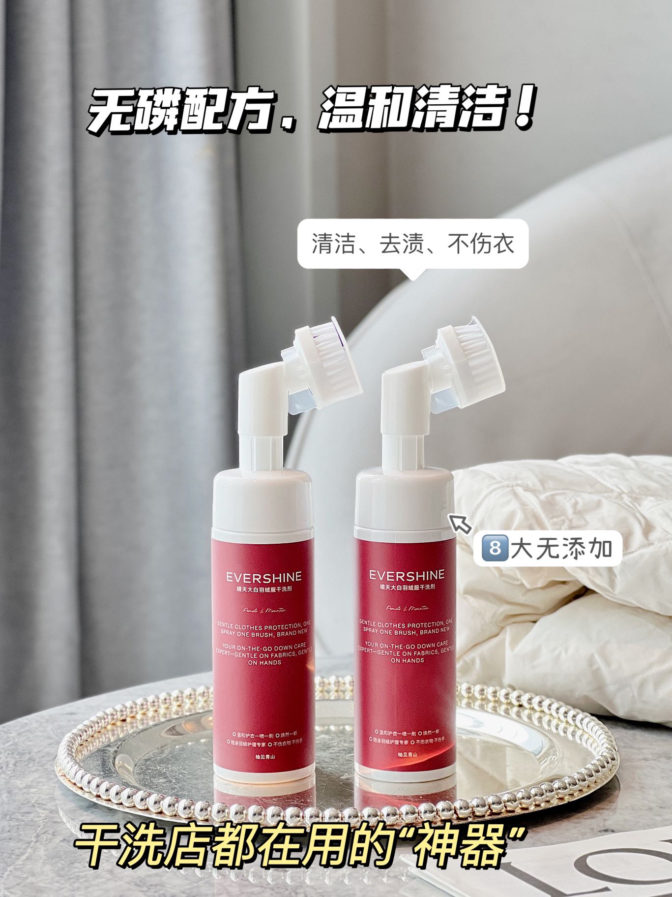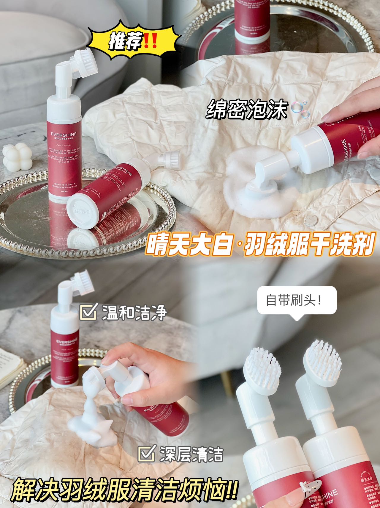 免水洗的羽绒服干洗剂🔥【EVERSHINE羽绒服清洁剂-柚见青山】自带软毛刷头,30秒干洗羽绒服不留痕❗️一喷一刷一抹省时省力,轻松还你全新羽绒服👍