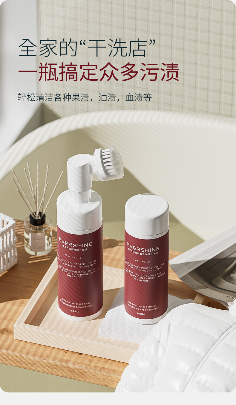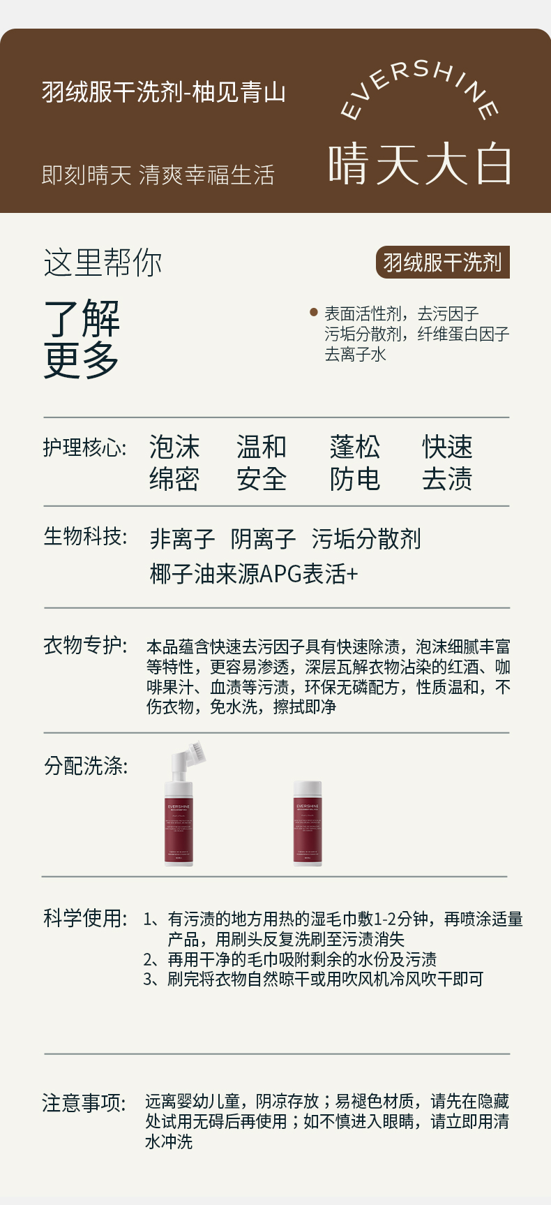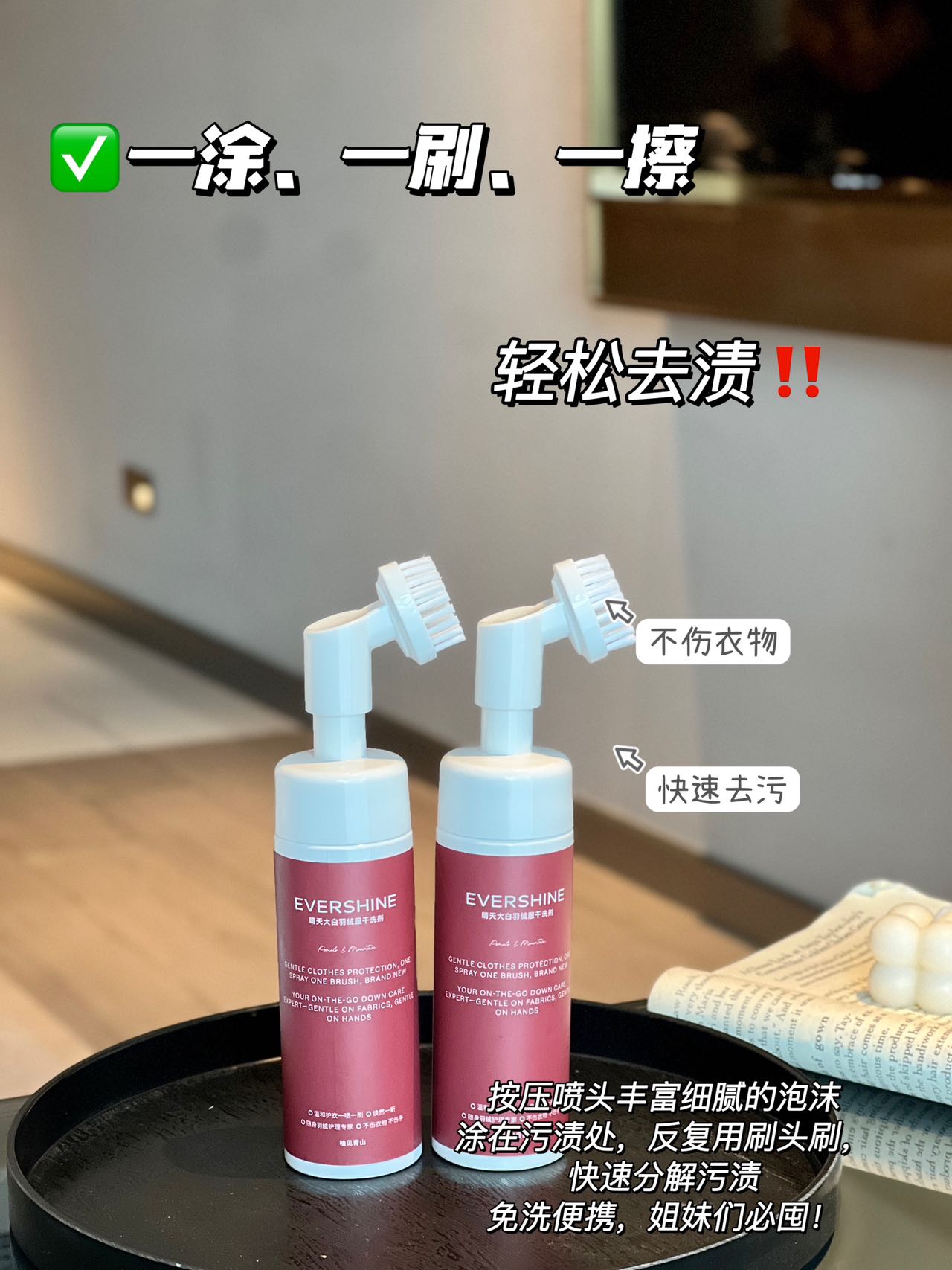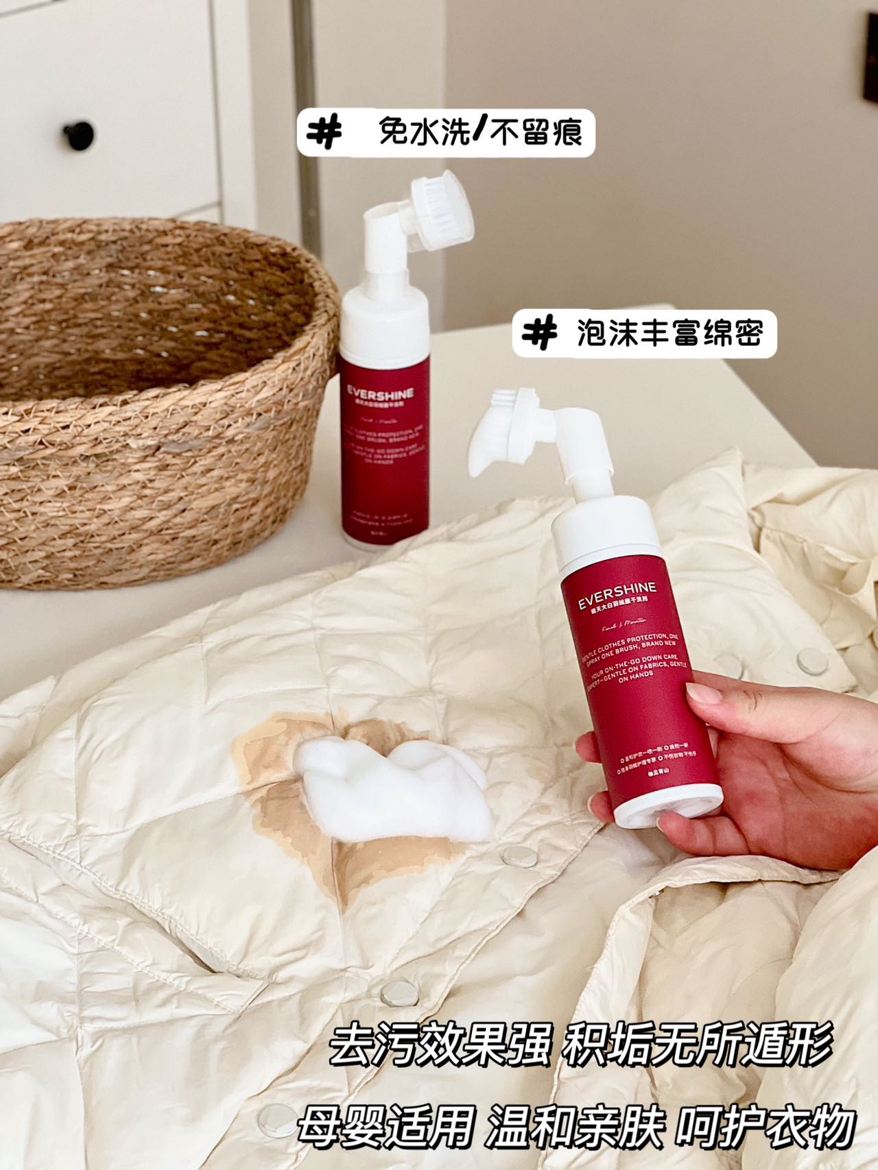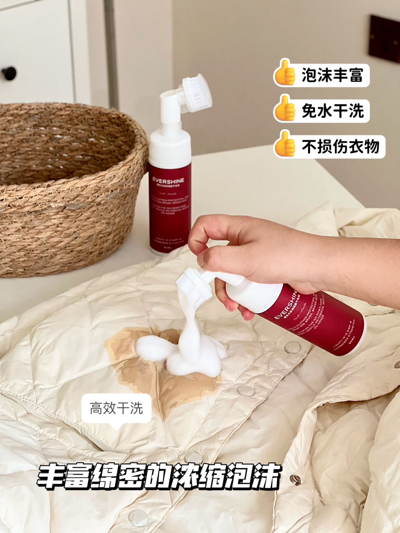 免水洗的羽绒服干洗剂🔥【EVERSHINE羽绒服清洁剂-柚见青山】自带软毛刷头,30秒干洗羽绒服不留痕❗️一喷一刷一抹省时省力,轻松还你全新羽绒服👍
