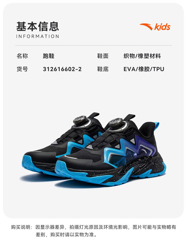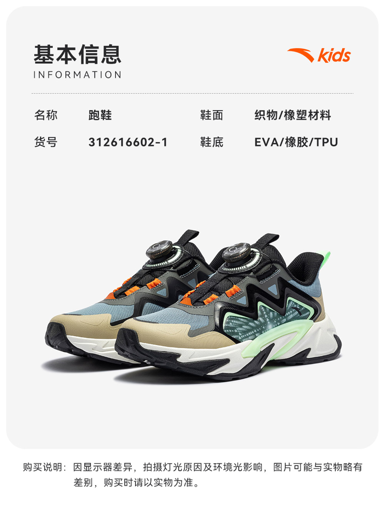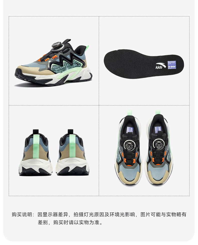烈焰安踏儿童男大童徒步鞋2026新款防滑耐磨中大童户外旋钮运动鞋312616602