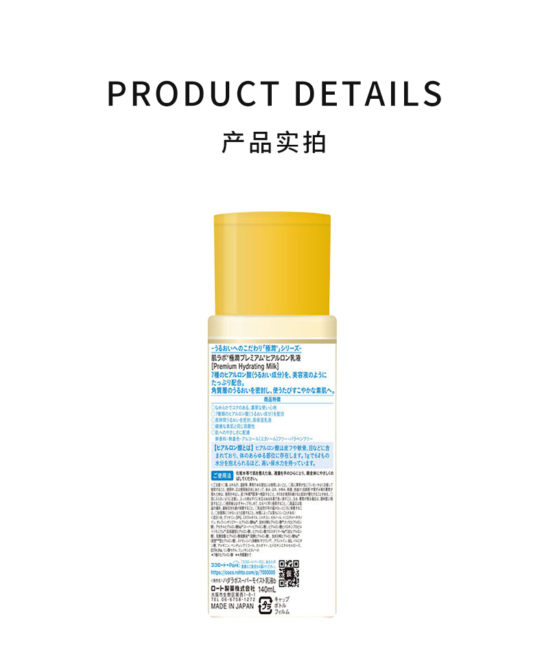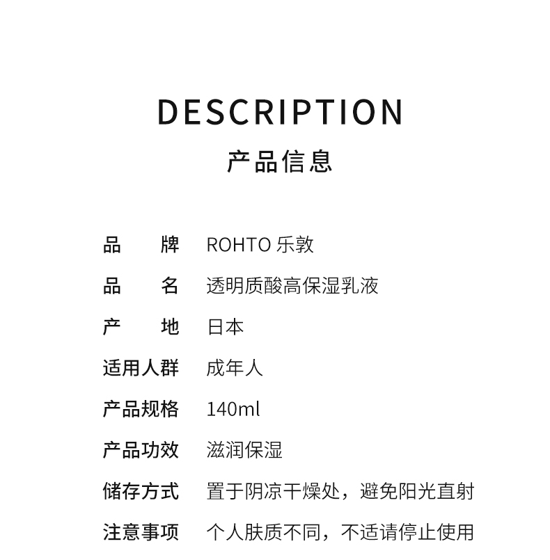 【保税仓】日本ROHTO/乐敦肌研极润玻尿霜美容液复合乳液140ml/瓶