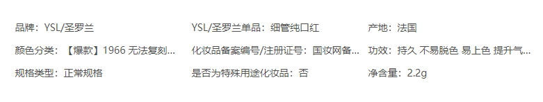 【保税仓】圣罗兰小金条1966色号2.2G 效期26.9月