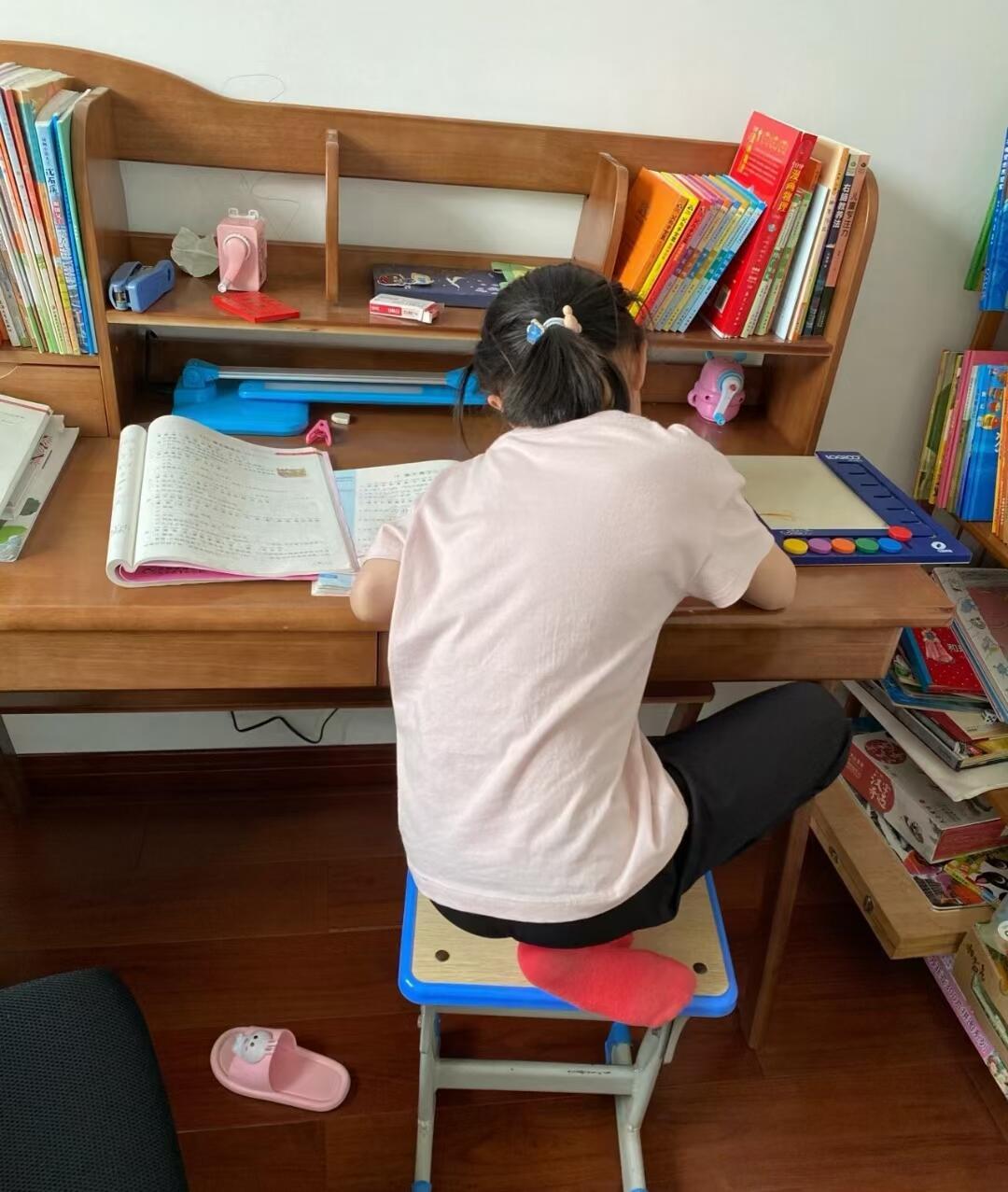 小朋友写作业长时间坐姿不正确,趴在桌面上的,也可以改善驼背