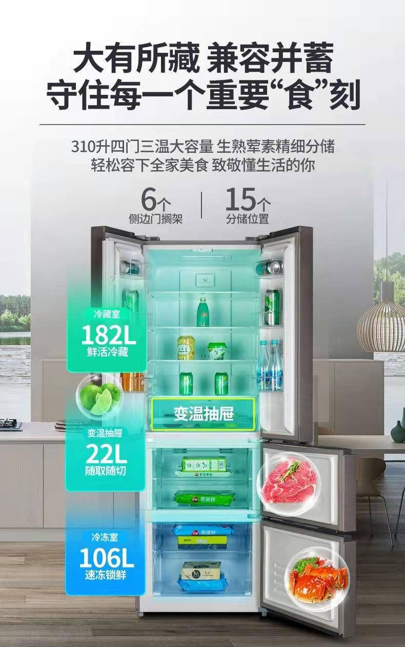 新飞法式多门家用冰箱BCD-310WGV8EC