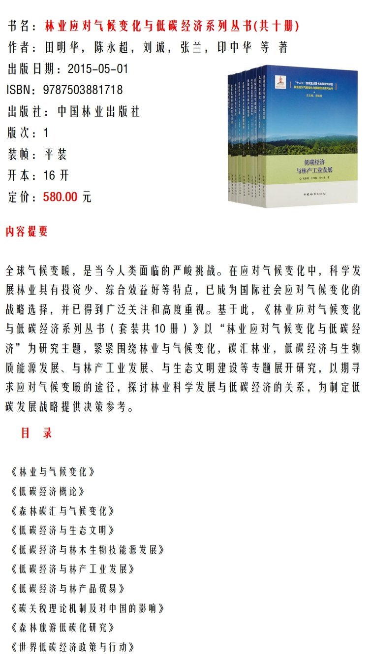 林业应对气候变化与低碳经济系列丛书 全10本 8171 林业与气候变化 低碳经济与生态文明 森林碳汇与气候变化 低碳经济概论中国林业