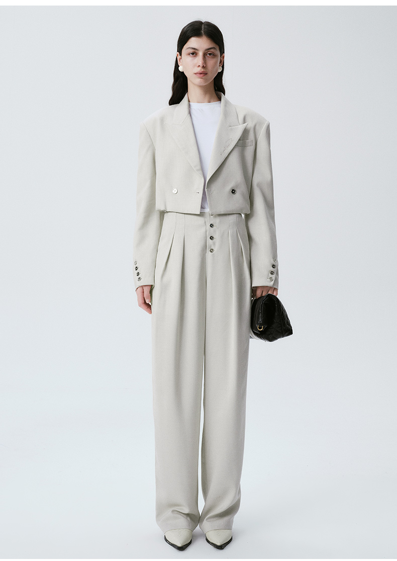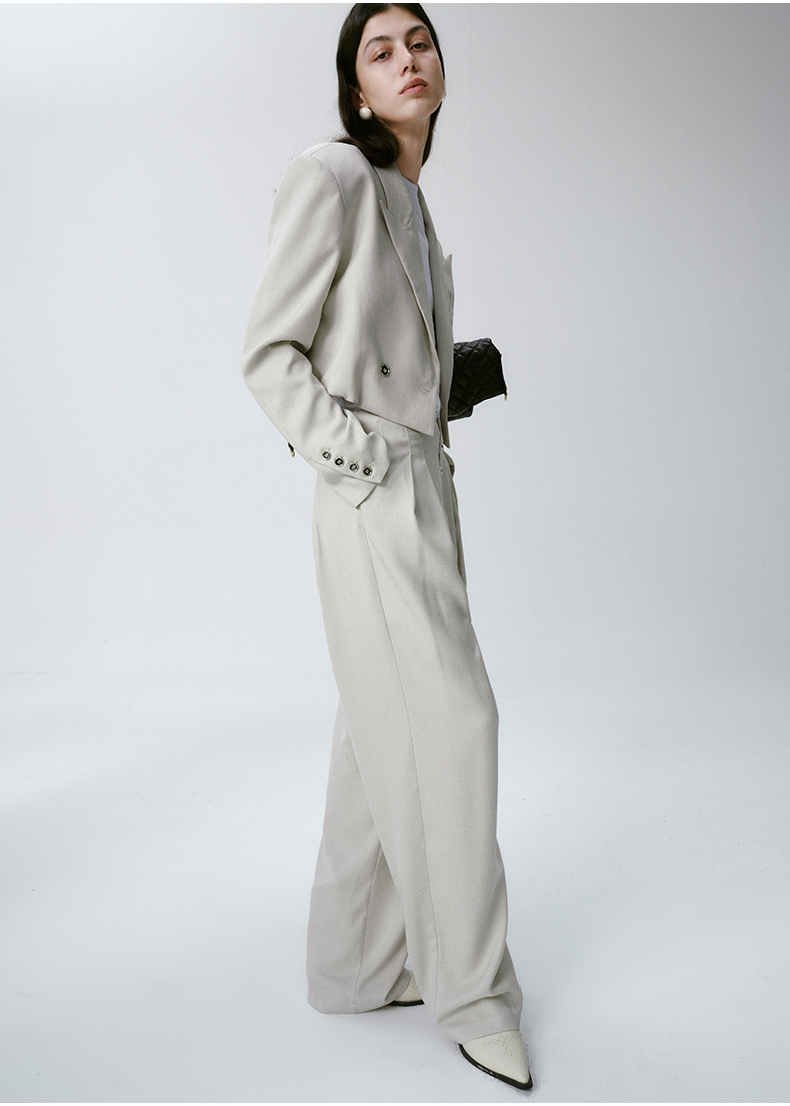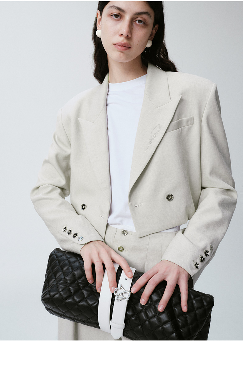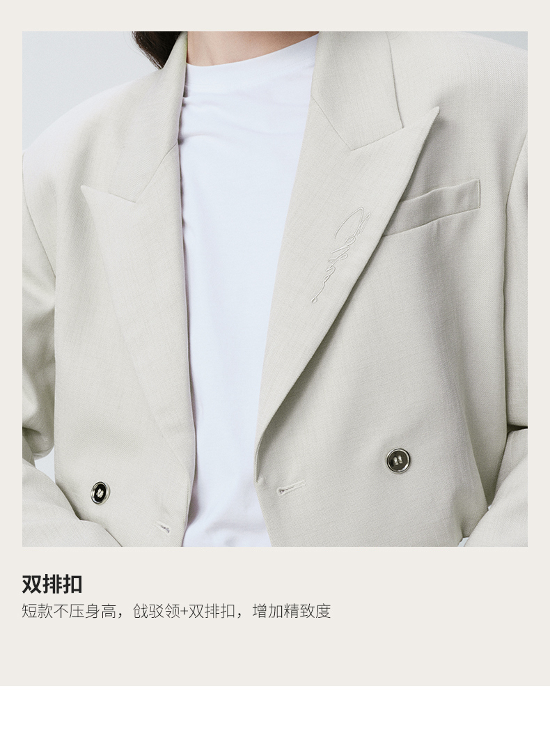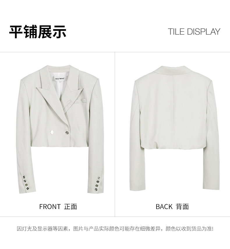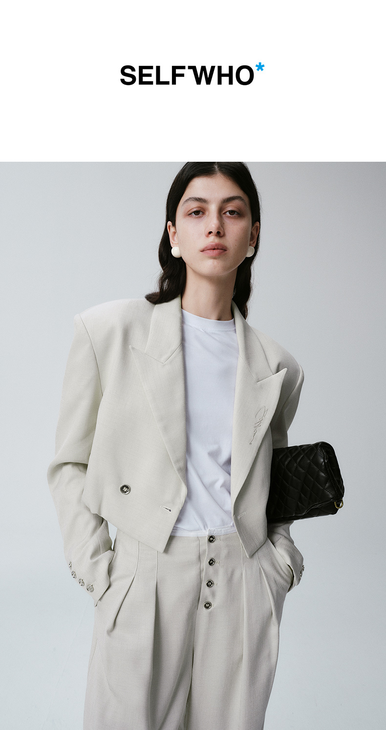 Self Who烟灰绿色西装外套女2024早春新款休闲宽松设计感短款西服