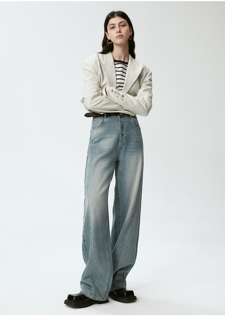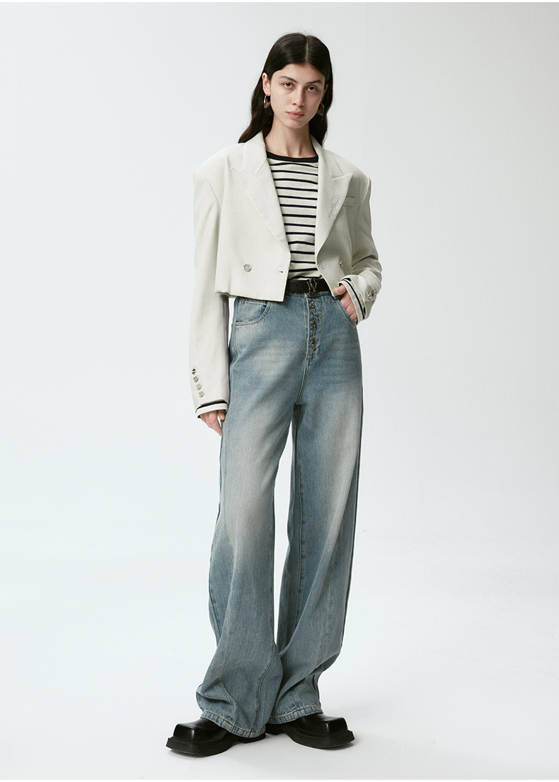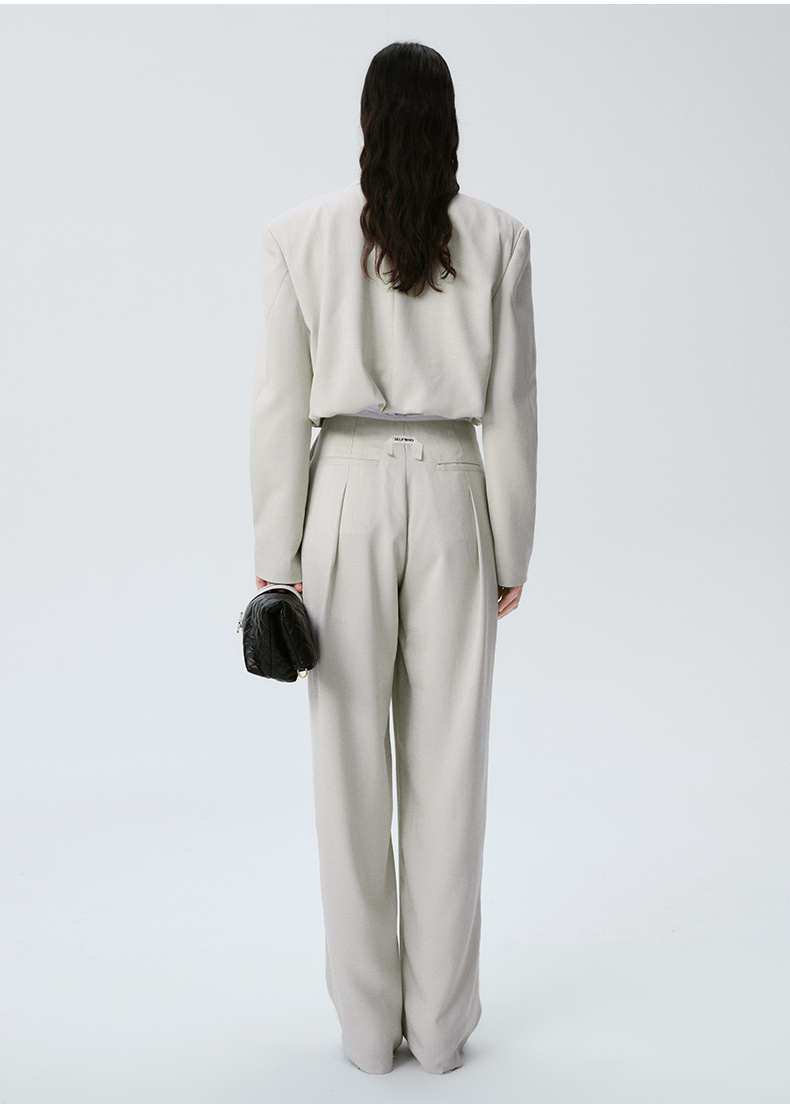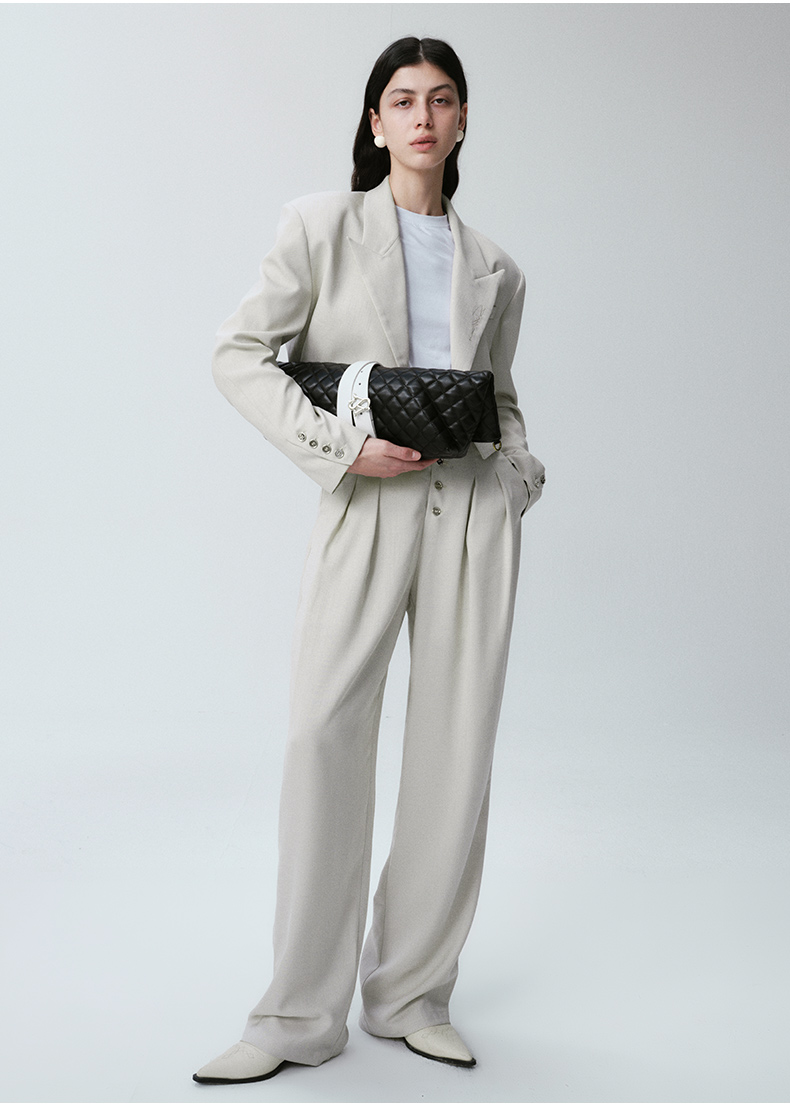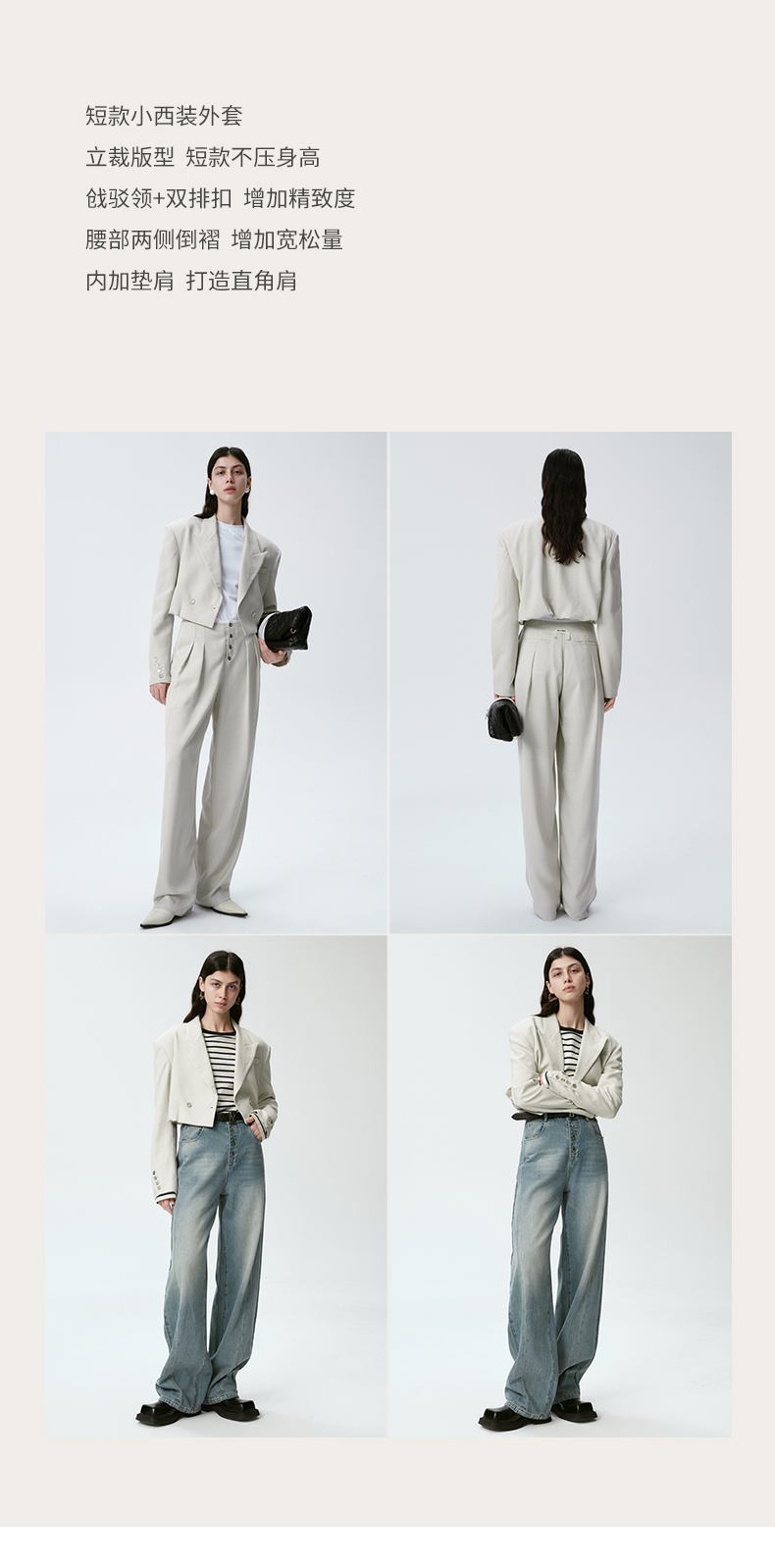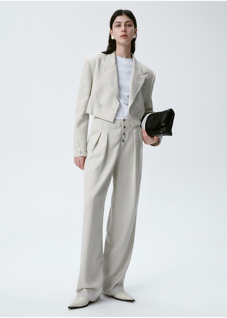 Self Who烟灰绿色西装外套女2024早春新款休闲宽松设计感短款西服