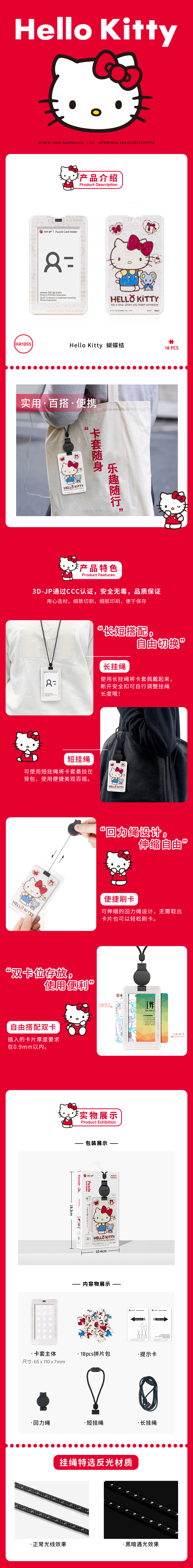 18片 卡套拼图 塑料拼图 HA1055 Hello Kitty 蝴蝶结