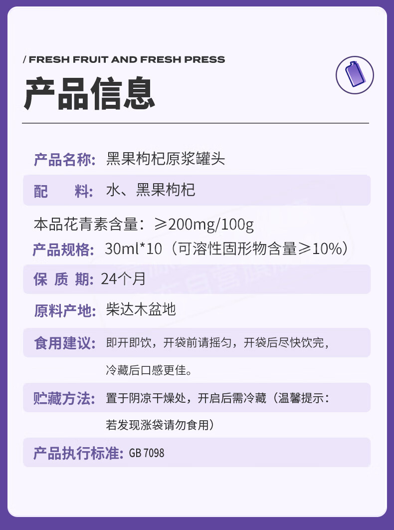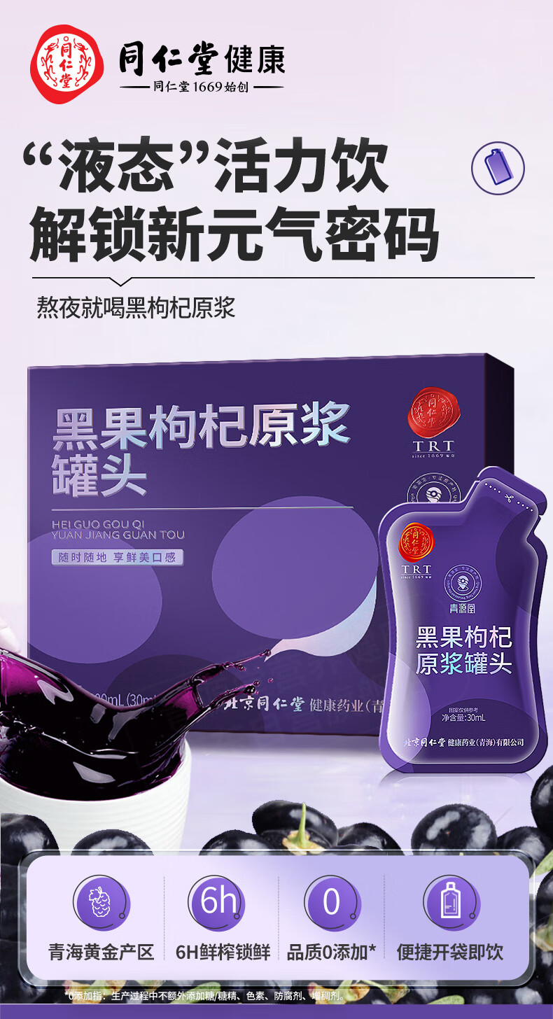 北京同仁堂 青源堂黑果枸杞原浆罐头-300mL(30mLx10袋)Q2100089