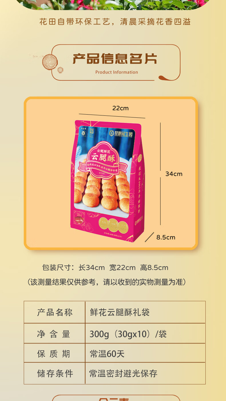 冠生园 云腿酥 鲜花云腿酥礼袋10枚 30g*10枚装