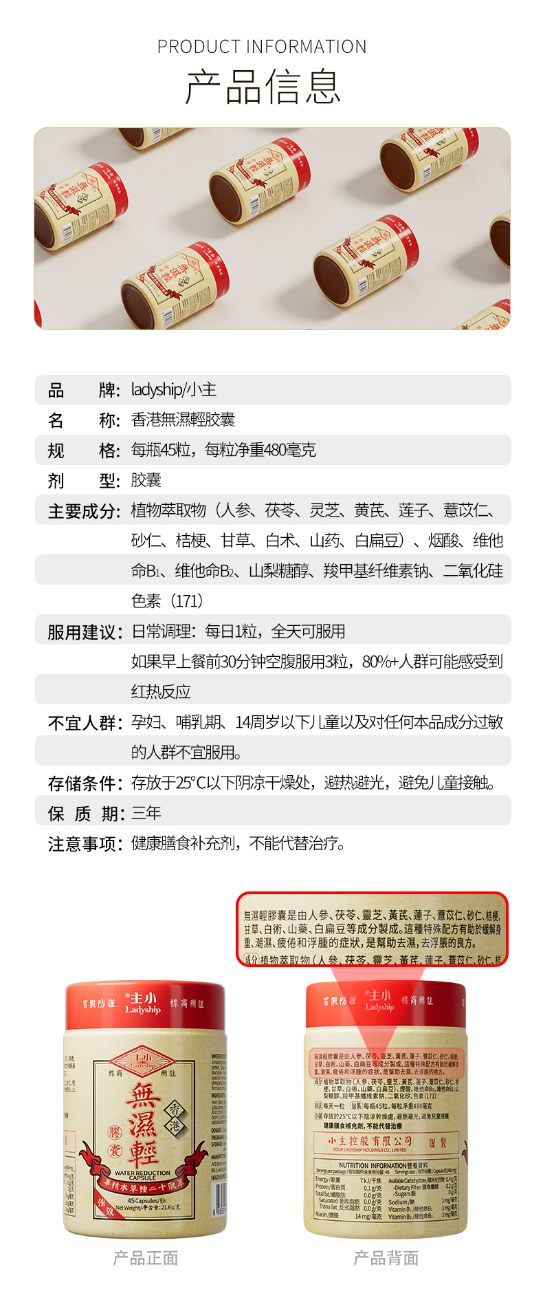 【保税仓】香港小主无湿轻胶囊 45粒*2瓶+15粒*2瓶 草本萃取【品牌方直发】