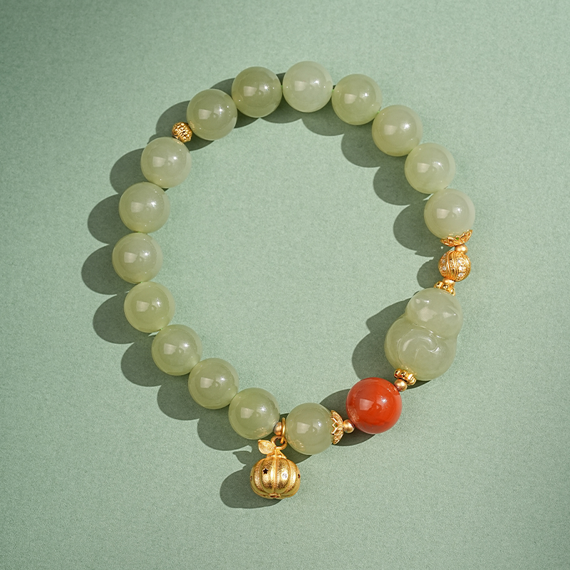 【品名】喵玉招财·和田玉南红纯银手串
