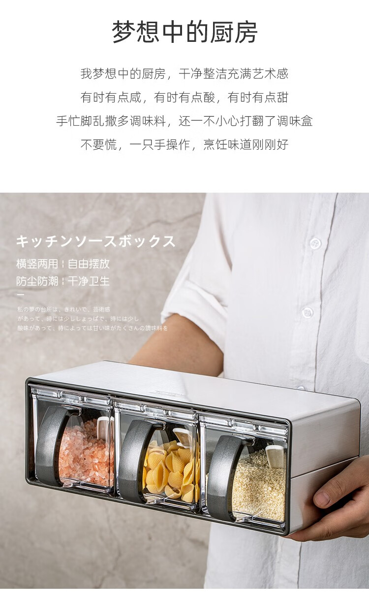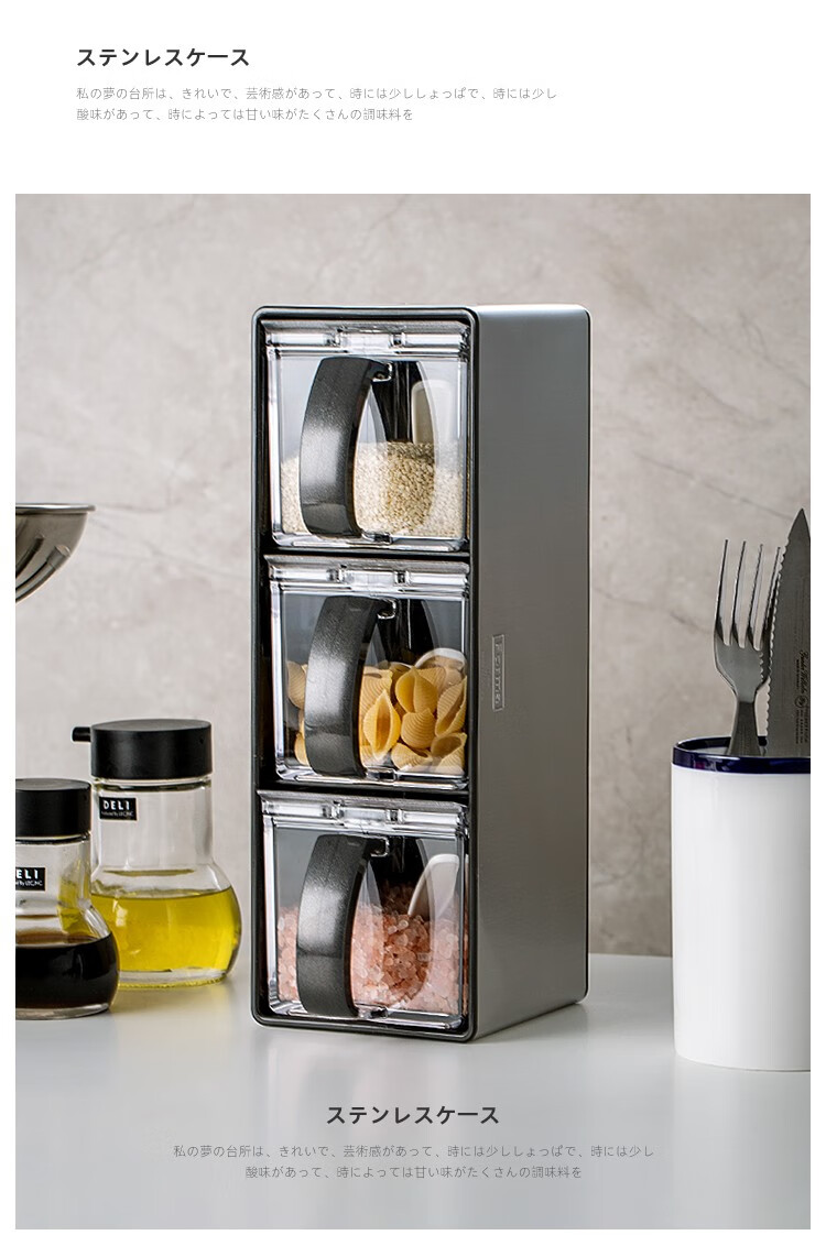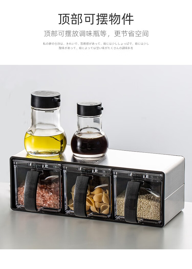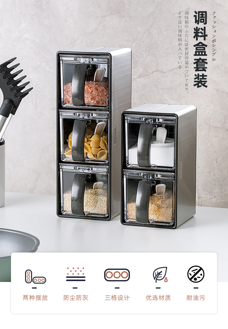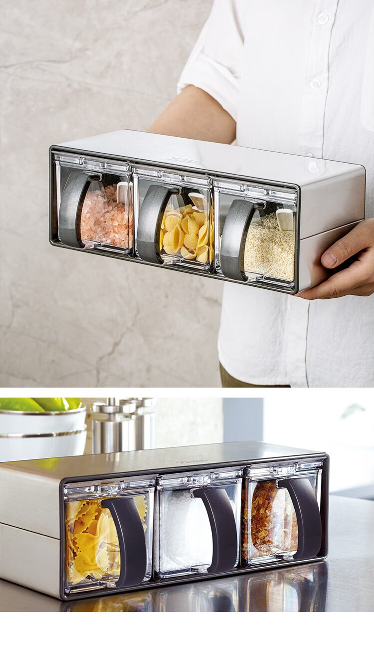 阿司倍鹭(ASVEL)不锈钢调味盒家用调料罐组合套装横竖两用640mLX3