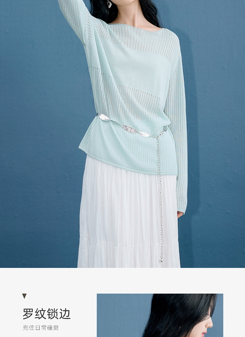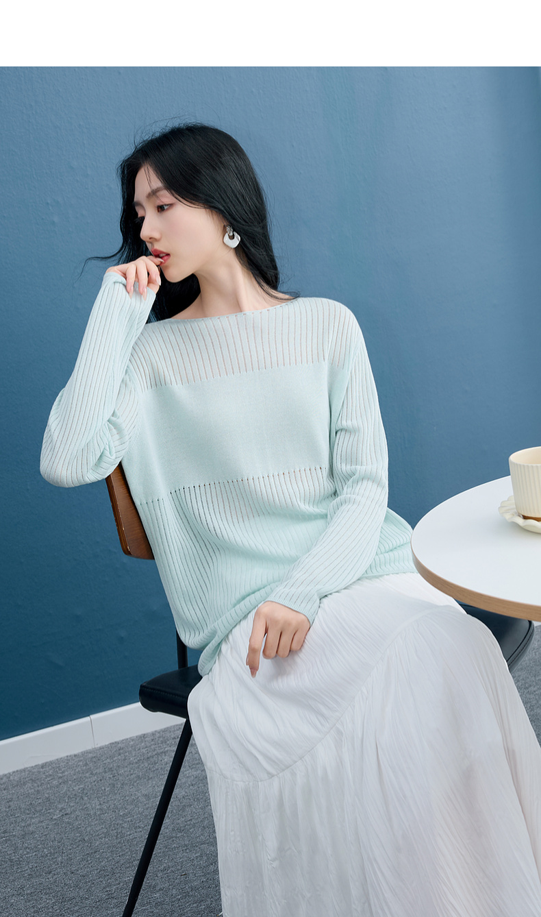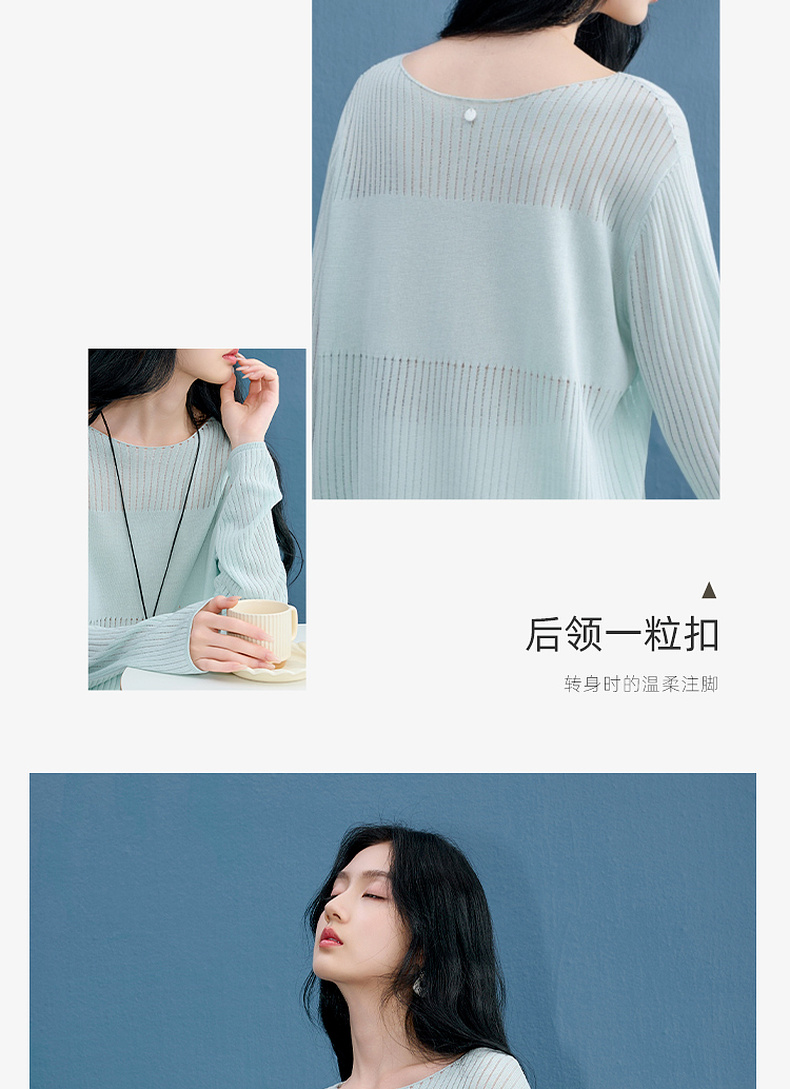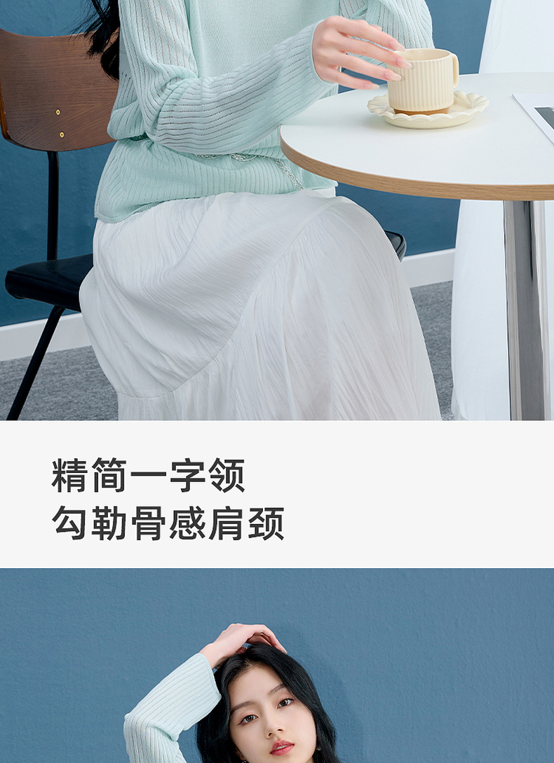 三彩2025秋季新款肌理感针织衫一字领长袖毛衫宽松套头S