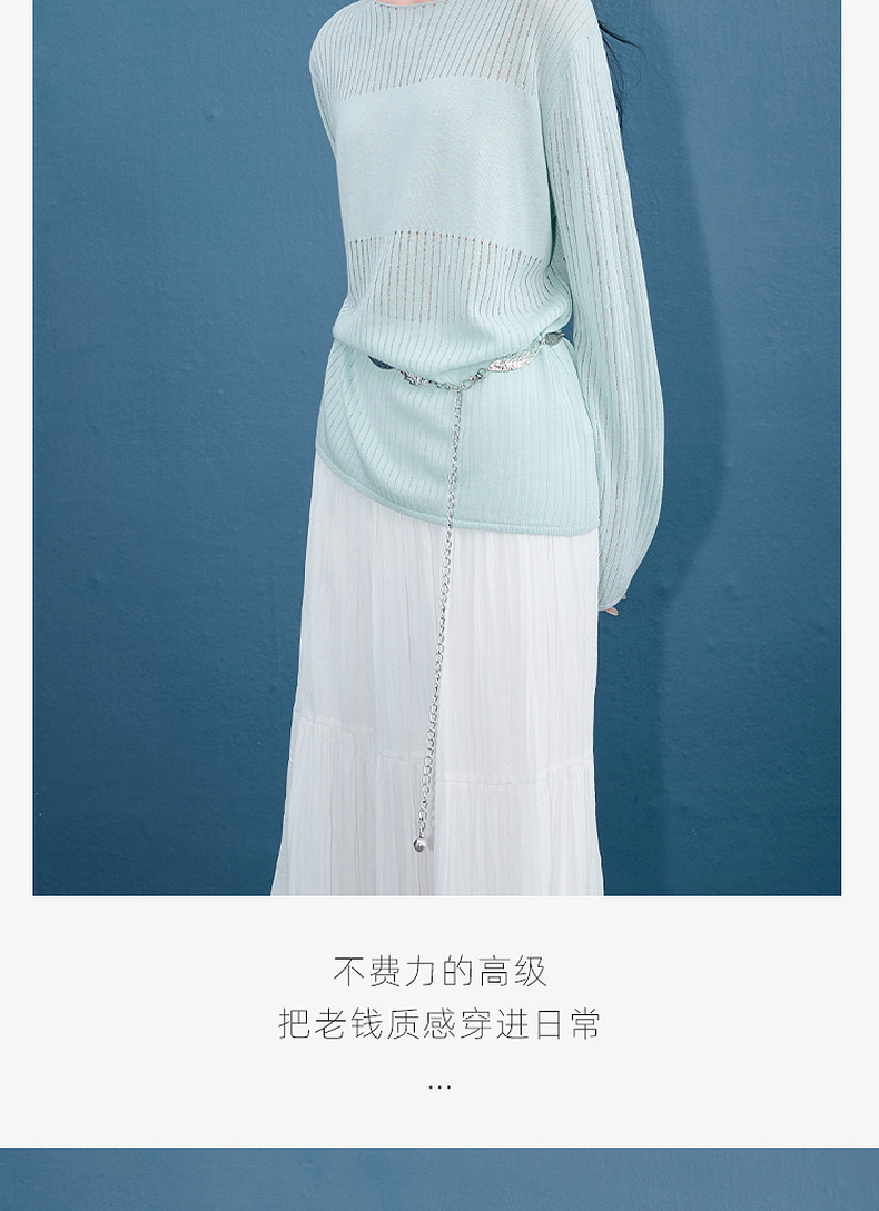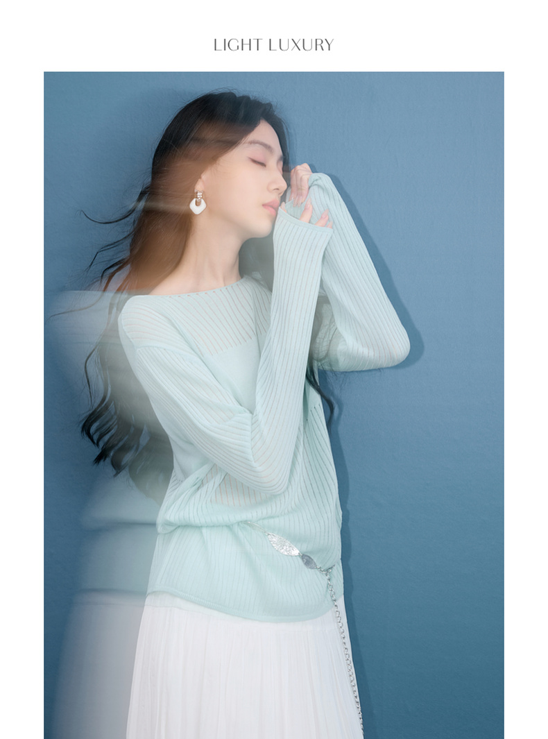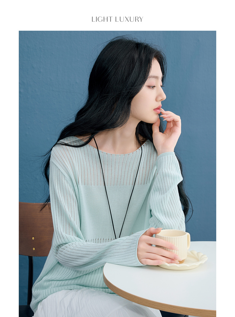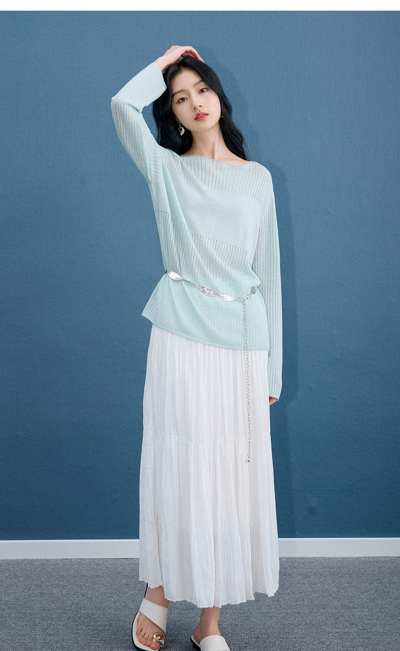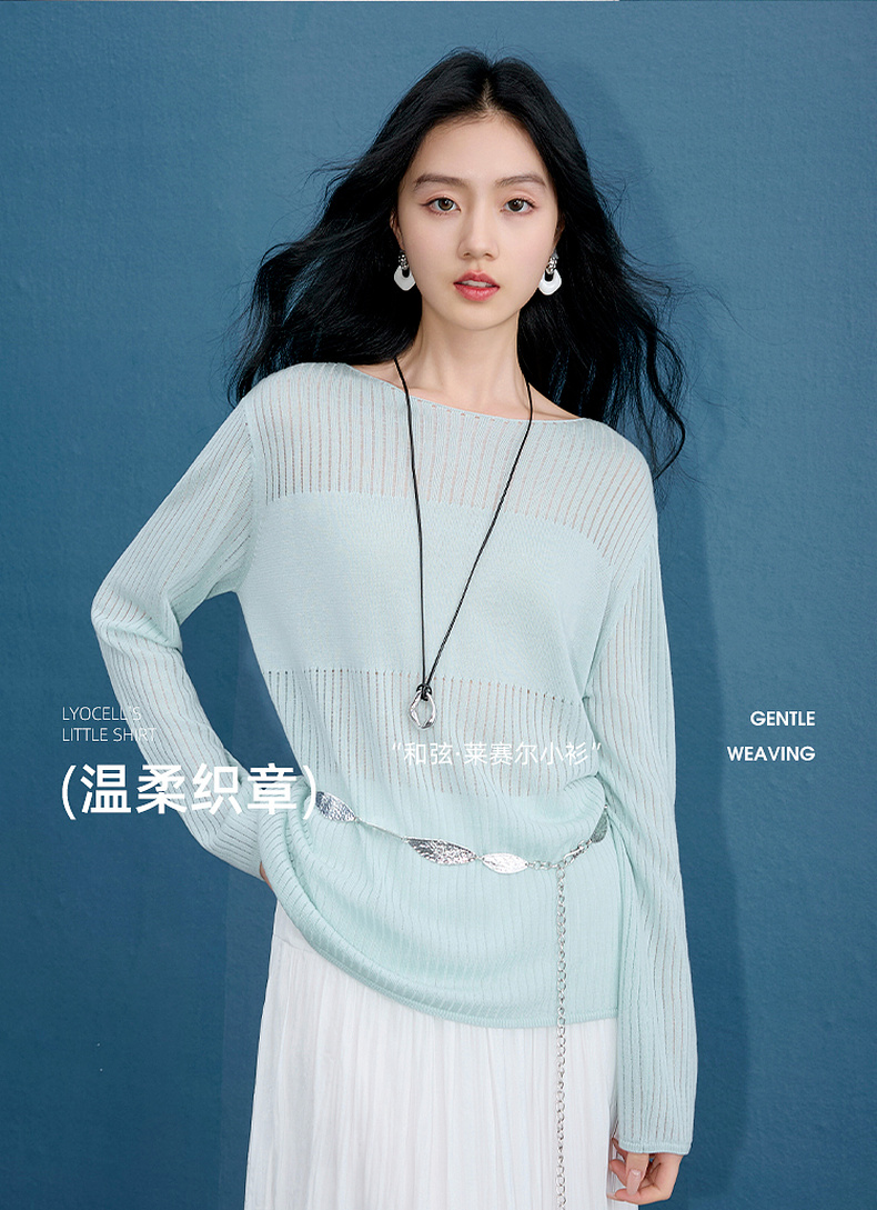 三彩2025秋季新款肌理感针织衫一字领长袖毛衫宽松套头S