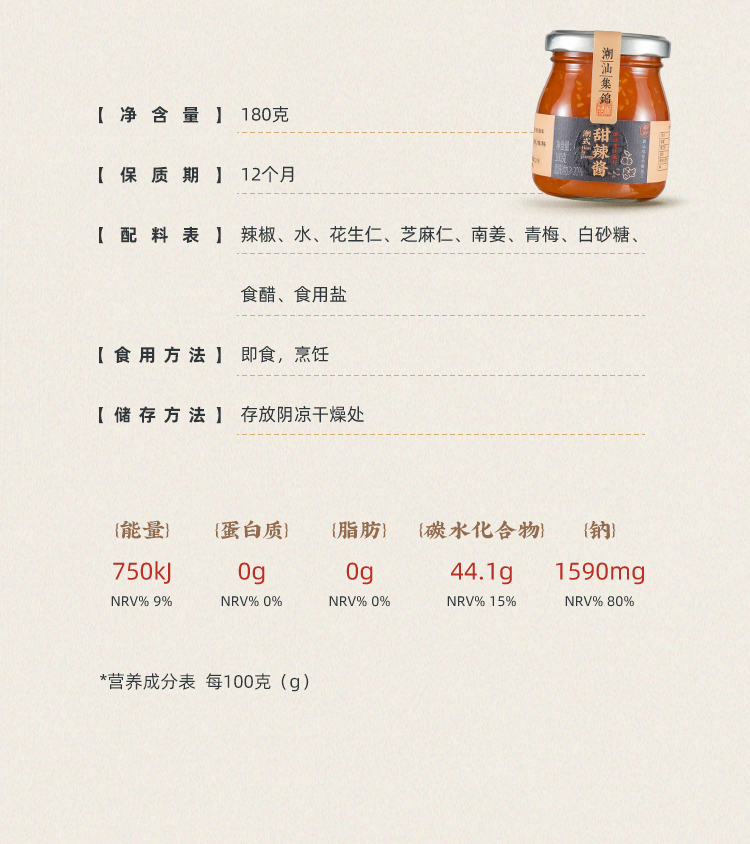 潮汕集锦甜辣酱180g 潮汕特色三渗酱