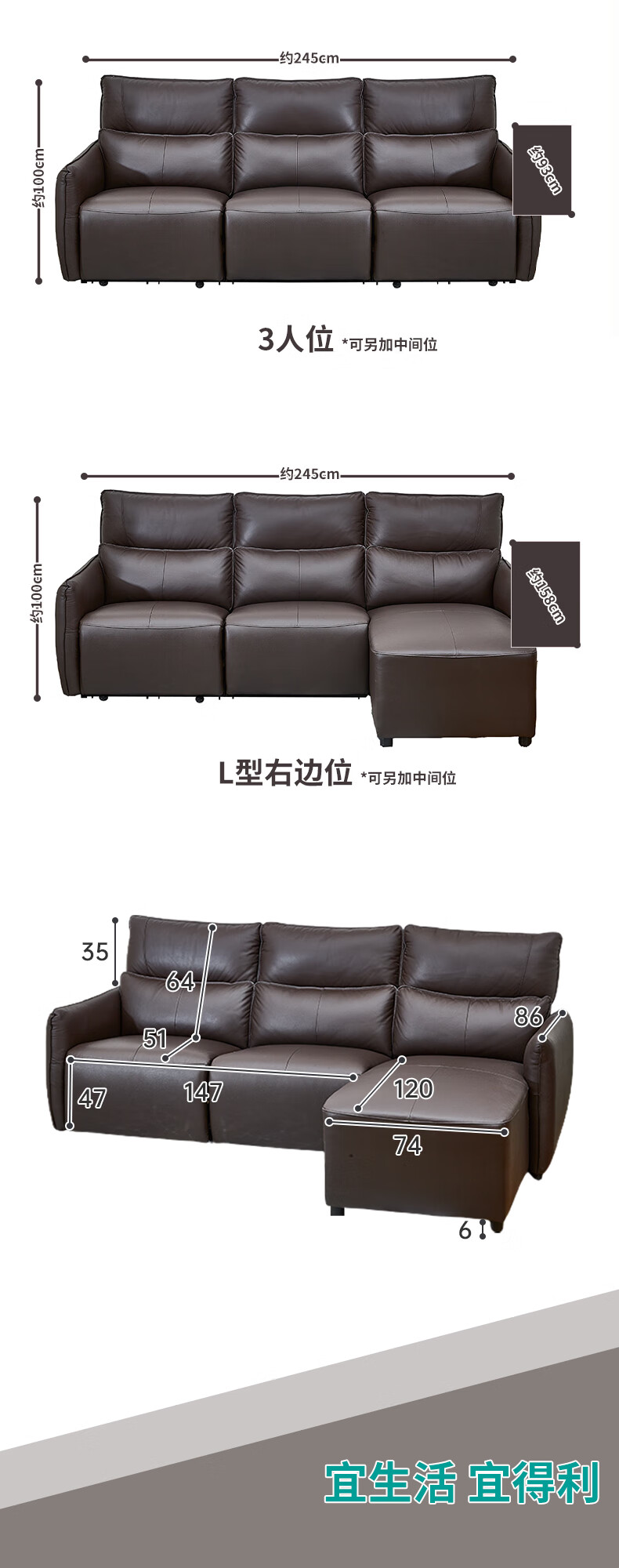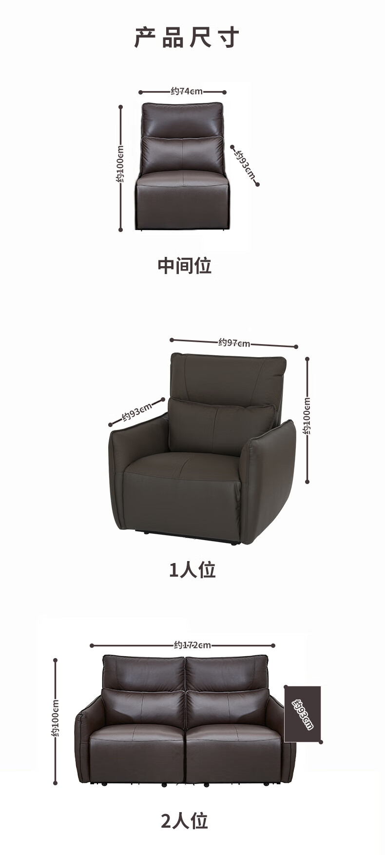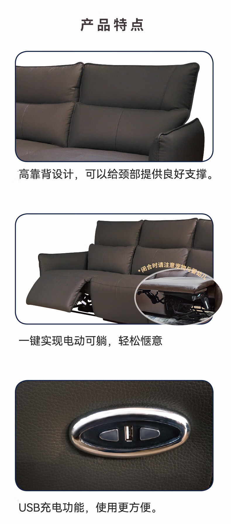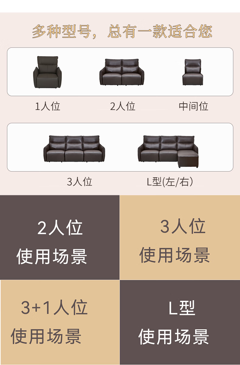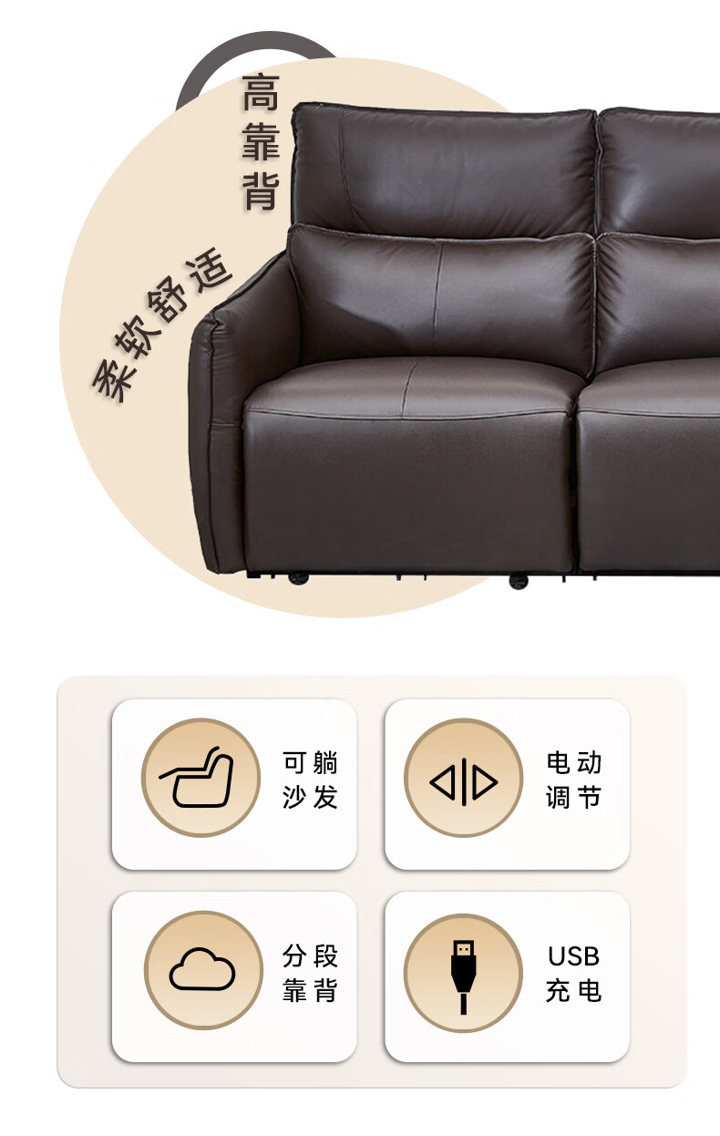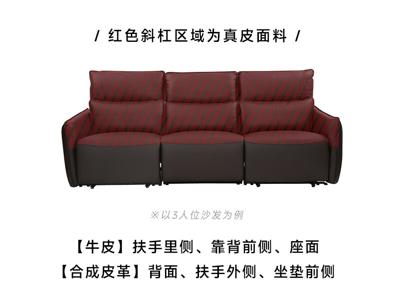【家具】电动功能皮沙发分段高靠背 沃夫特2 三人位
