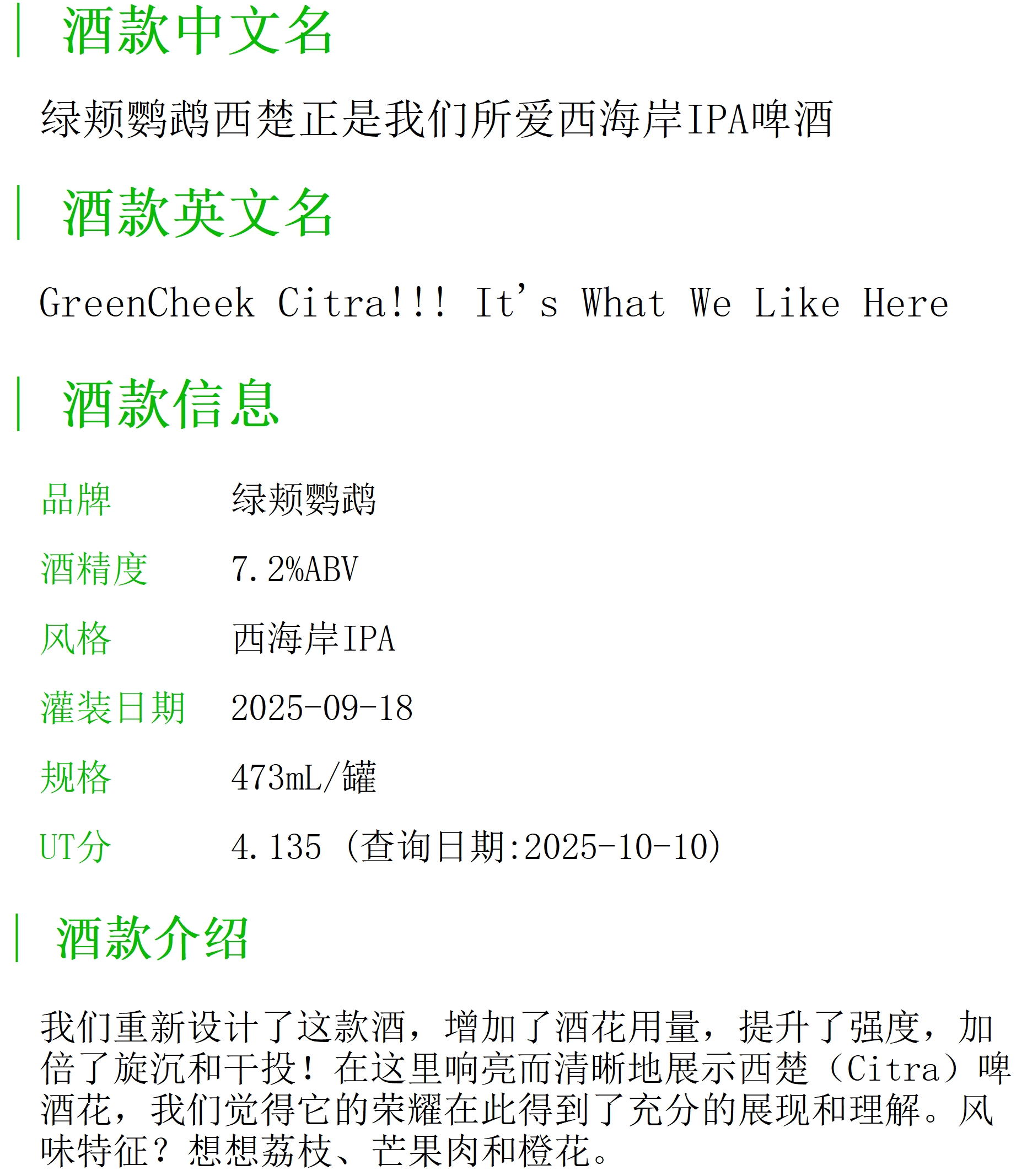 绿颊鹦鹉西楚正是我们所爱西海岸IPA啤酒