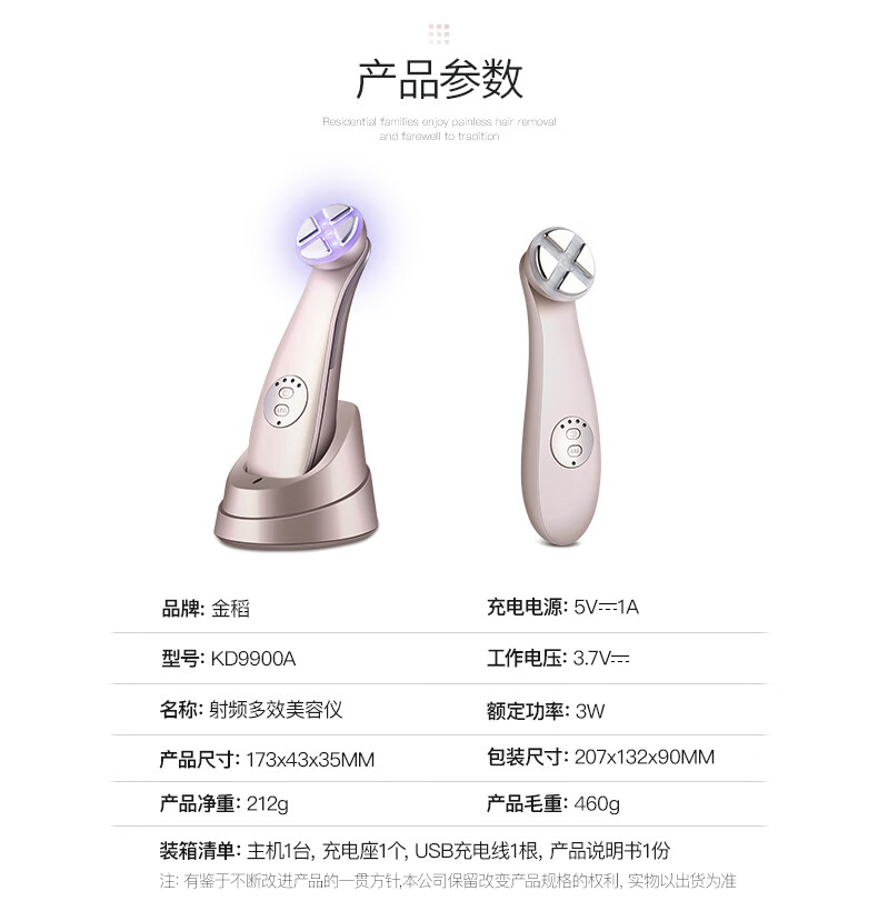 金稻金稻金稻导入仪美容器家用脸部按摩仪离子导入仪彩光美容仪生日礼物 KD9900