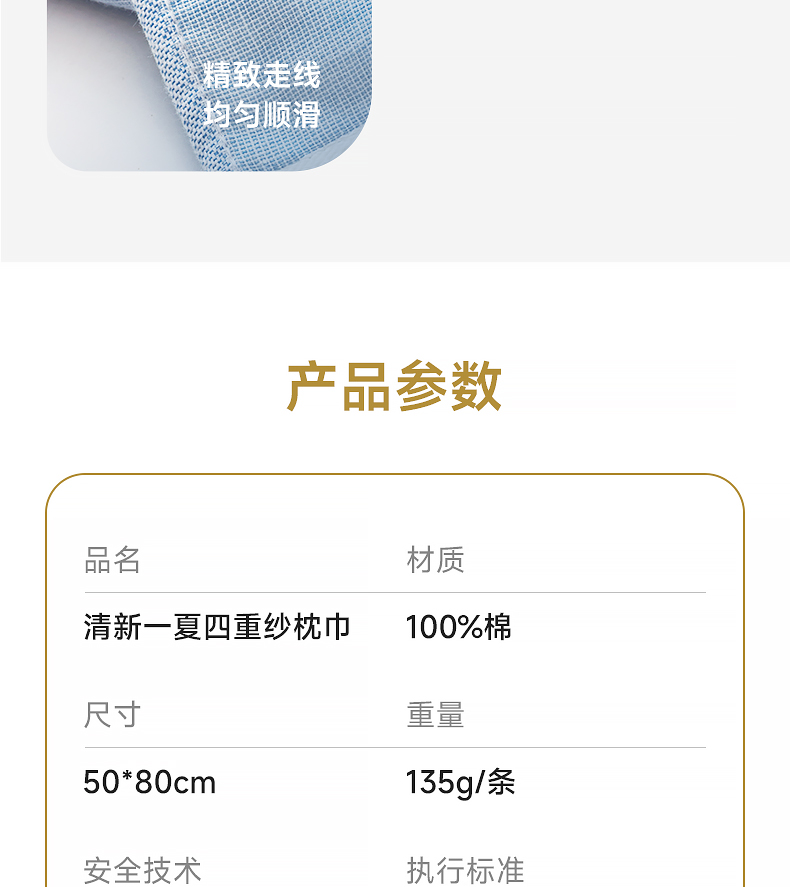 内野X-清新一夏四重纱枕巾 50*80cm