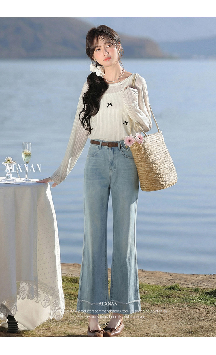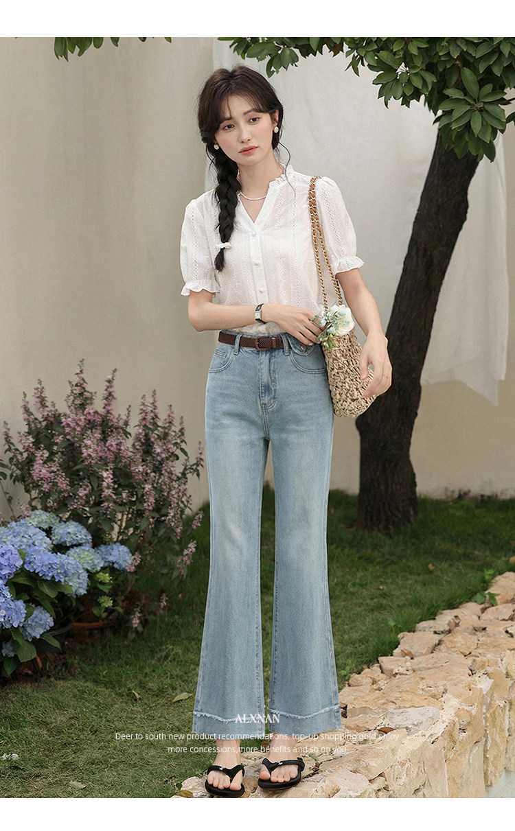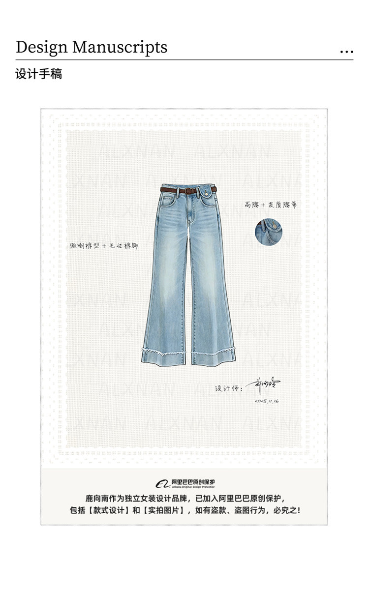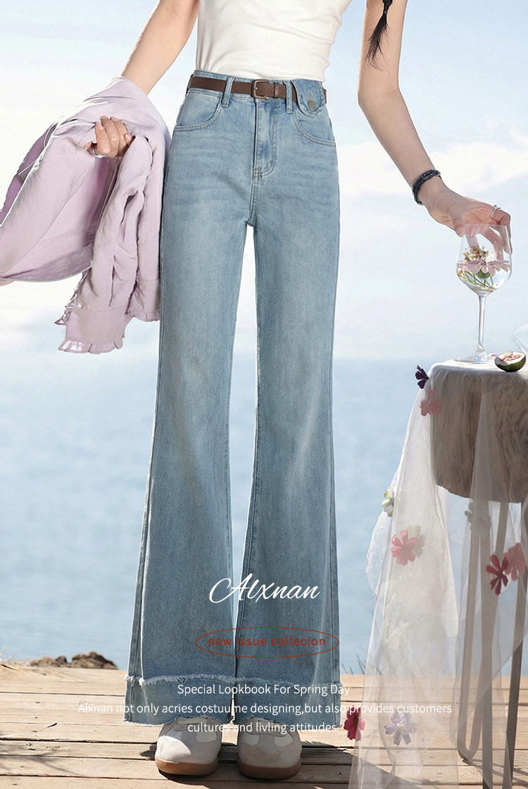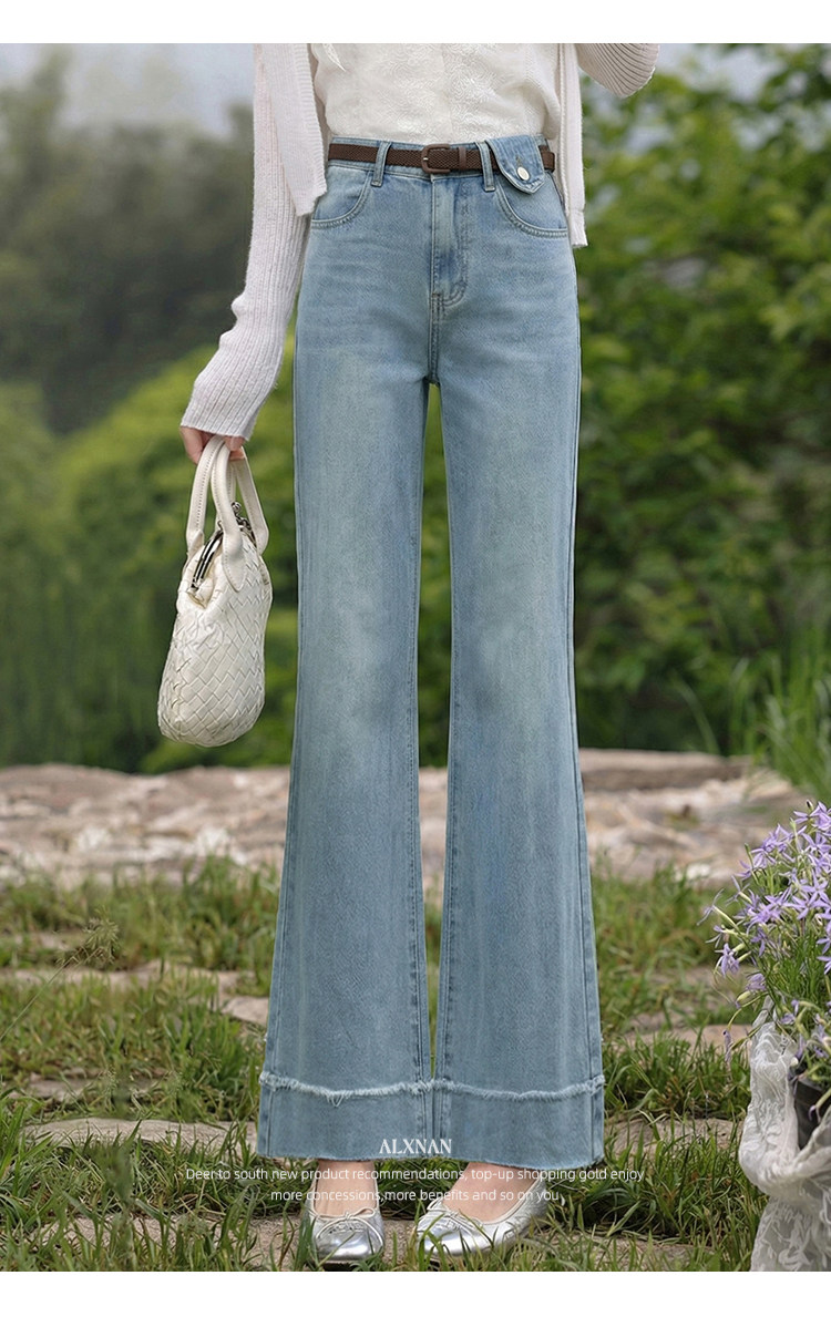 鹿向南「牛仔诗篇」蓝色微喇直筒牛仔裤女春季新款高腰显瘦长裤子