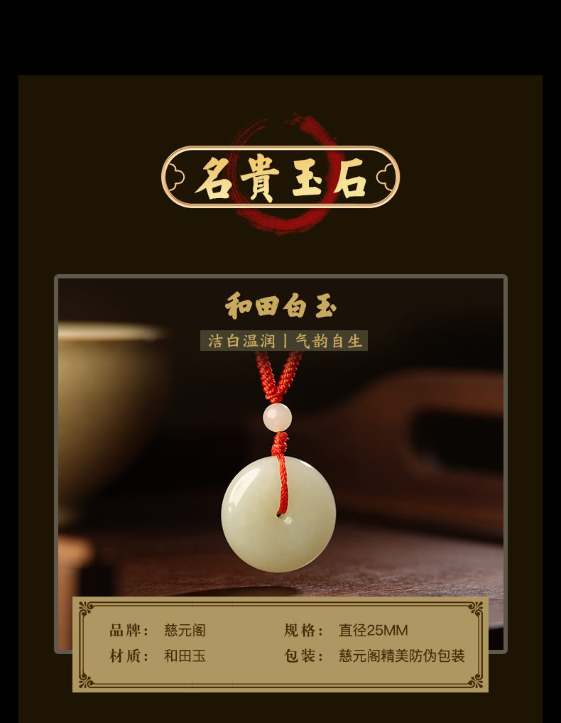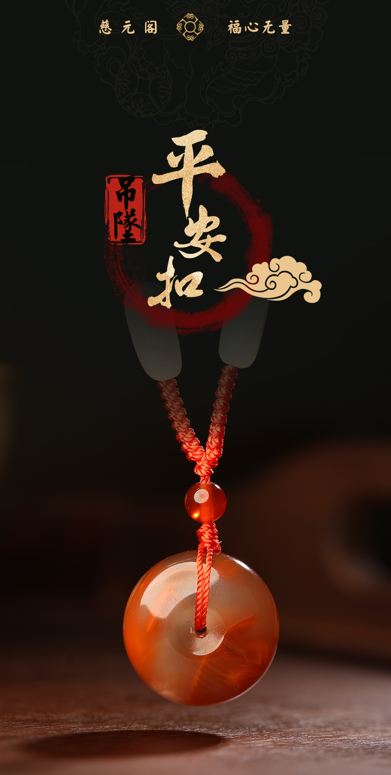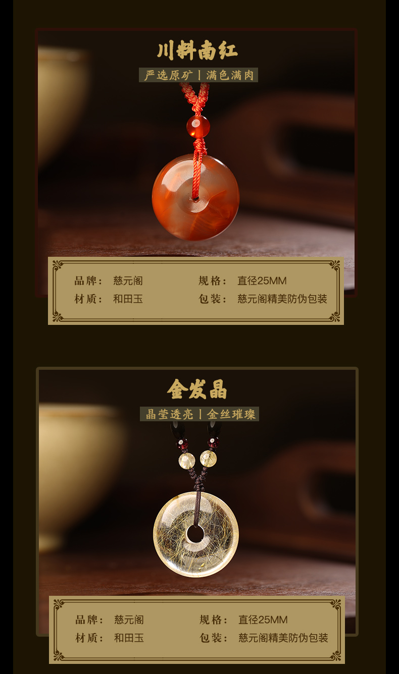 慈元阁和田玉平安扣吊坠男女满色满肉南红玛瑙项坠金发晶墨玉挂件