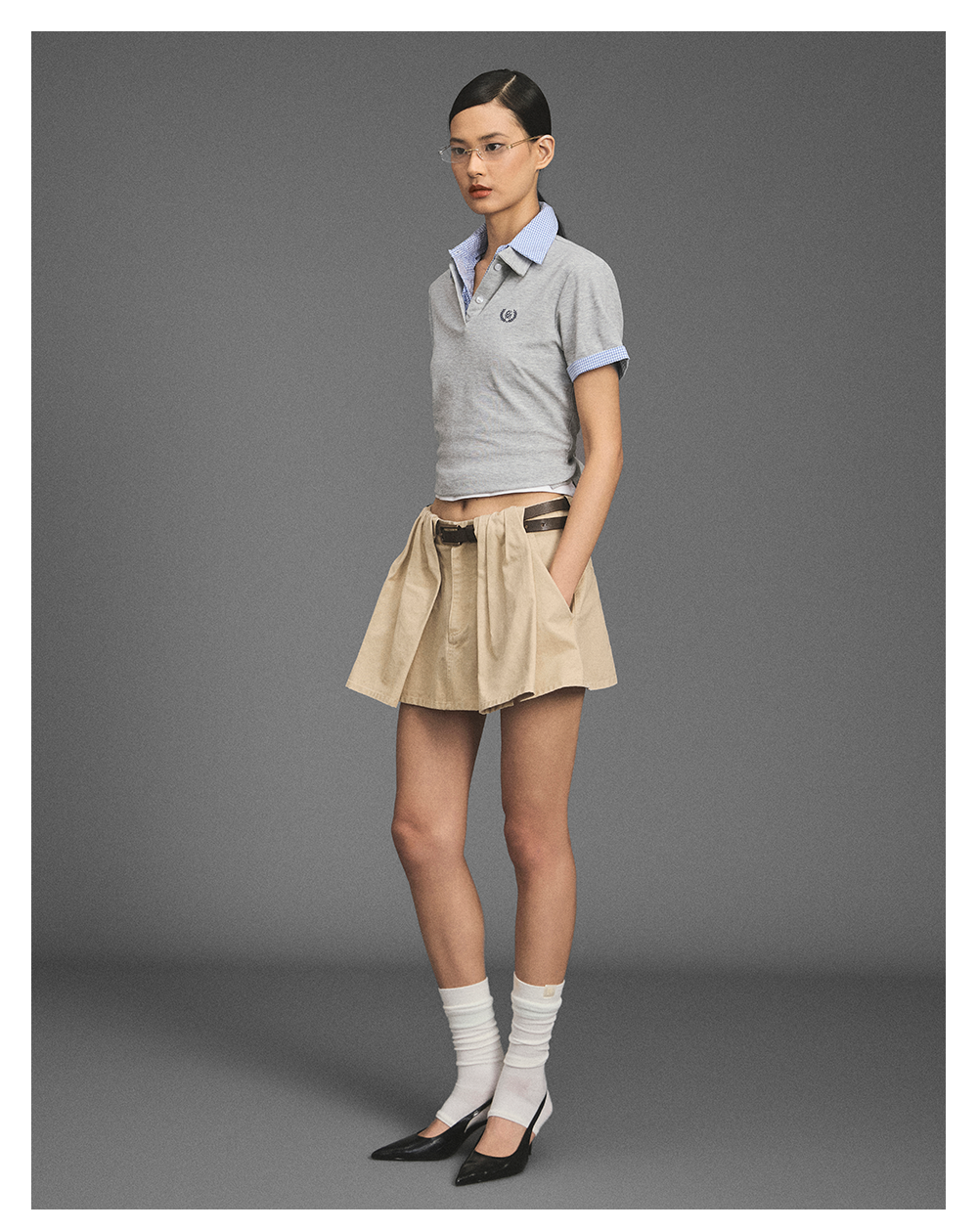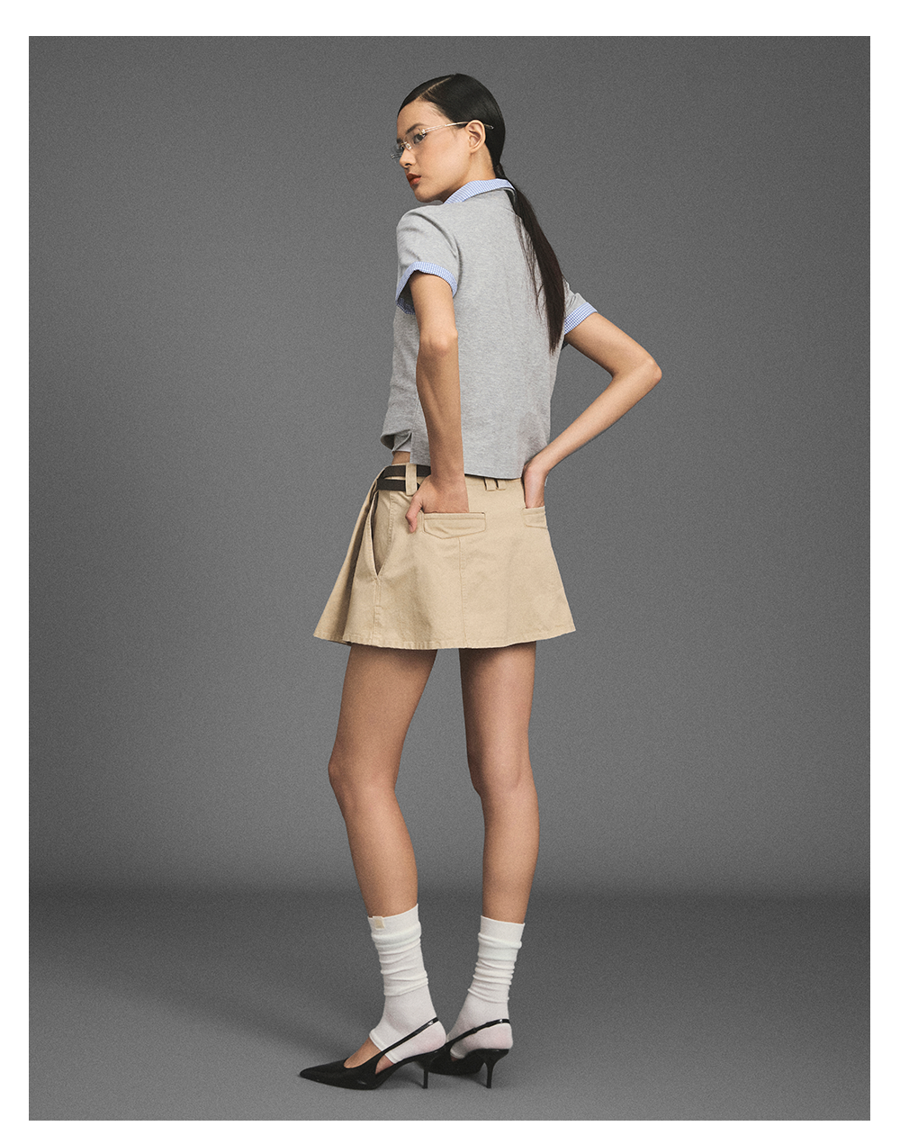 GOODBAI 新款花体刺绣logo休闲A字短裙半身裙女