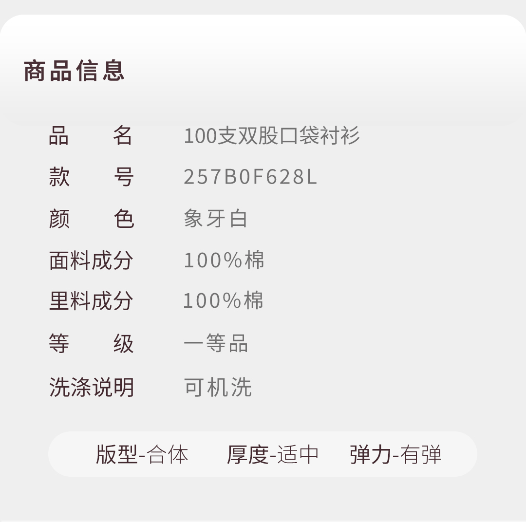 100支双股口袋衬衫257B0F628L长绒棉DP免烫衬衫天然透气[门店专款]