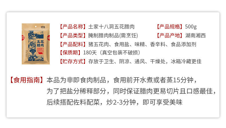 唐人神 土家十八洞湖南特产腊味湘西腊肉五花肉500g