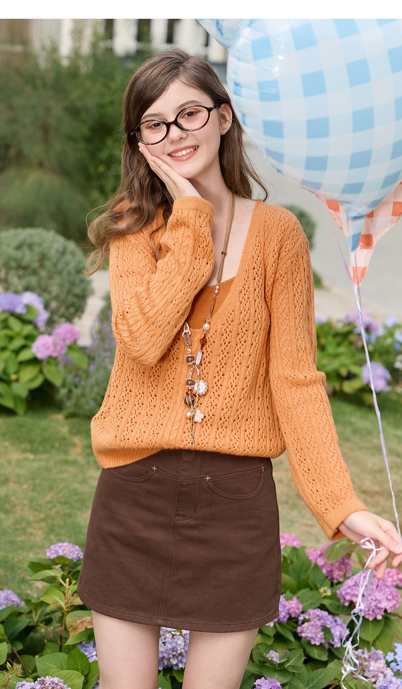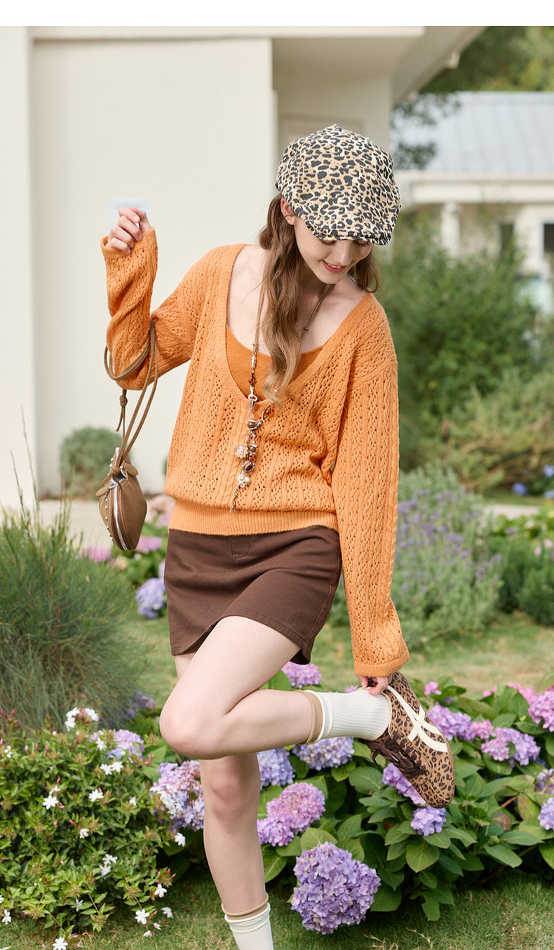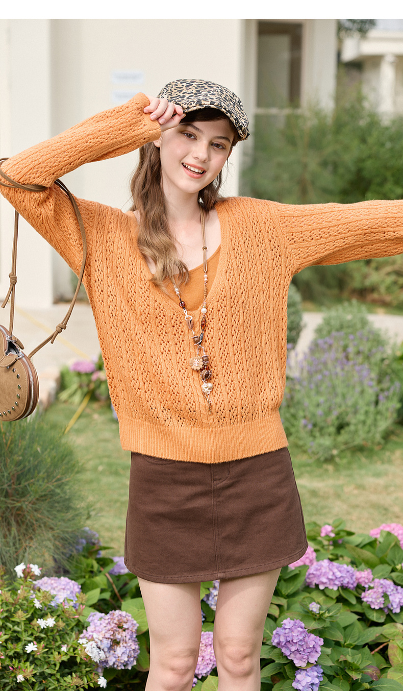 三彩独醒2026春季新款针织衫套装吊带两件套镂空罩衫套头F