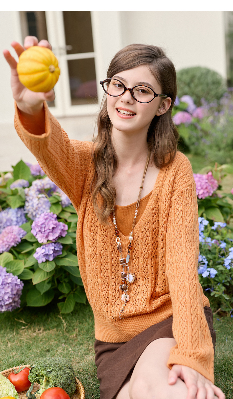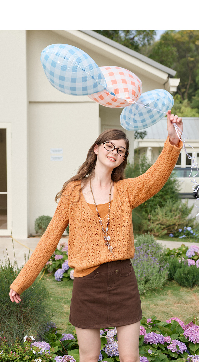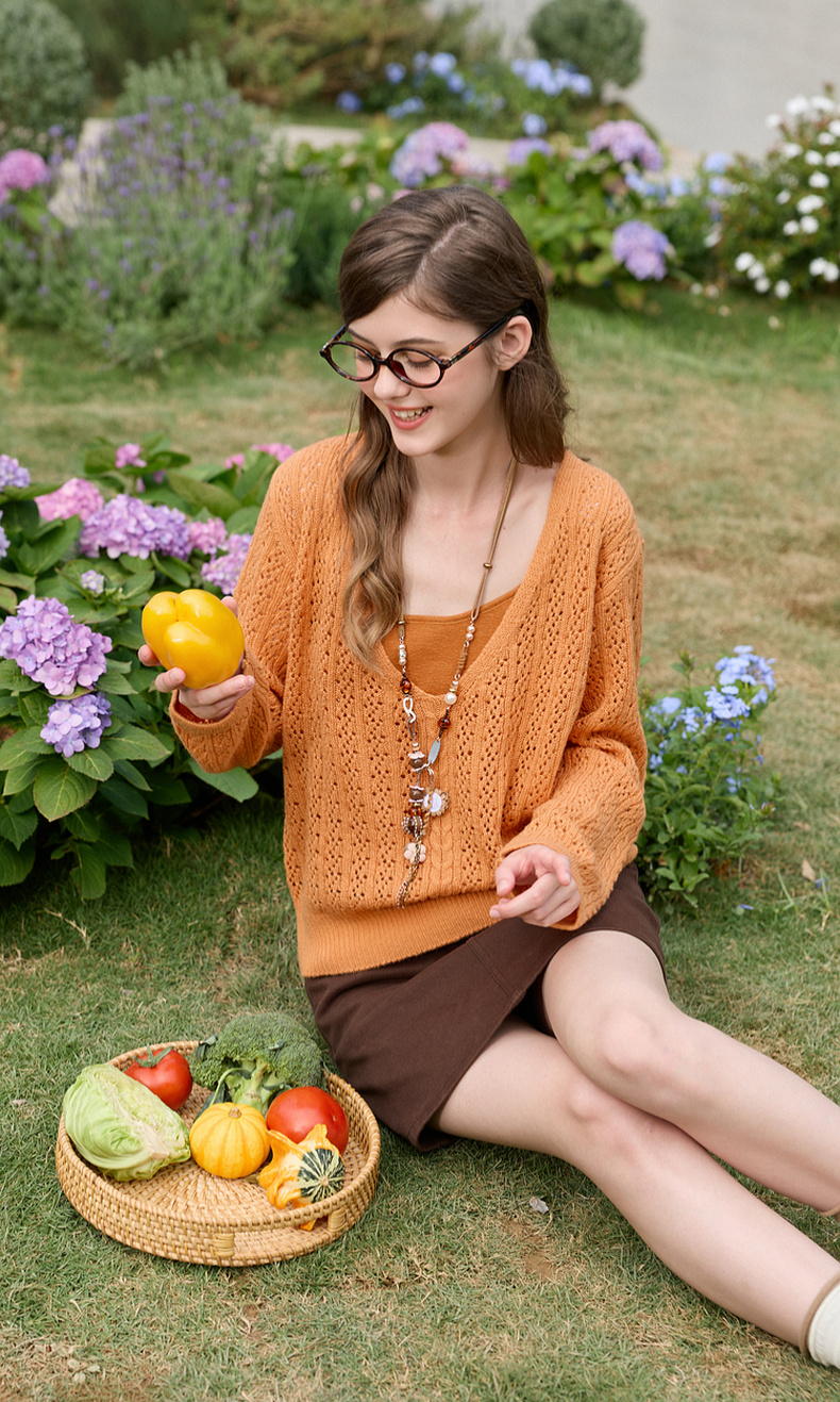 三彩独醒2026春季新款针织衫套装吊带两件套镂空罩衫套头F