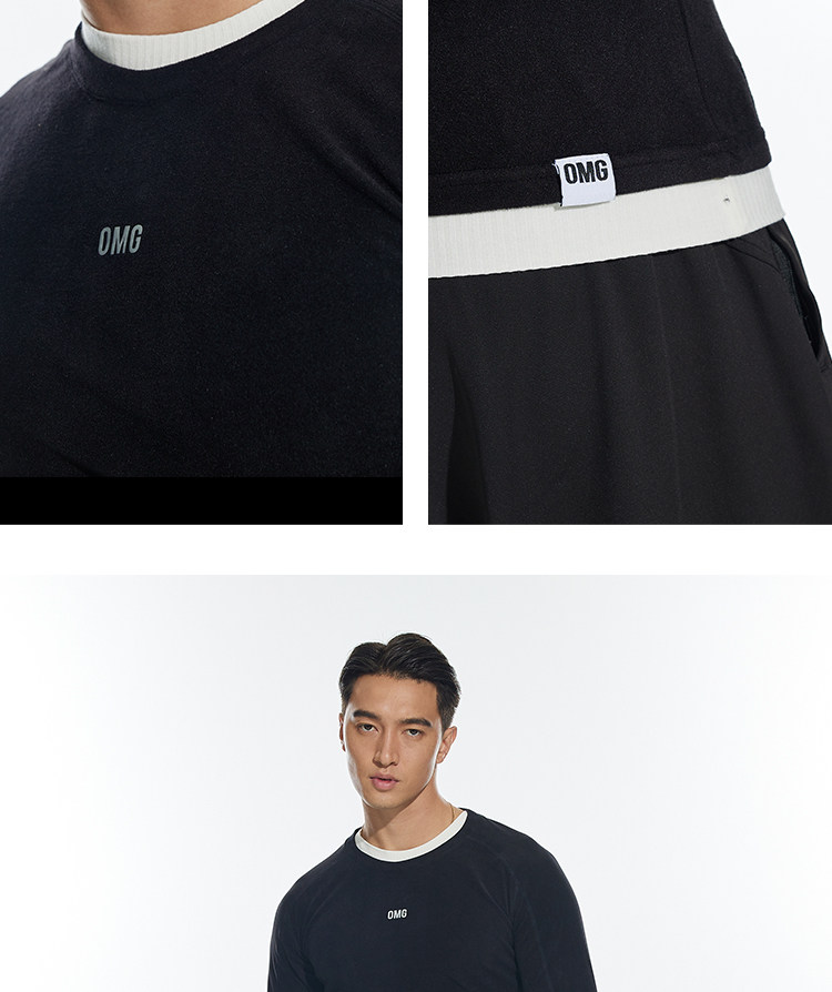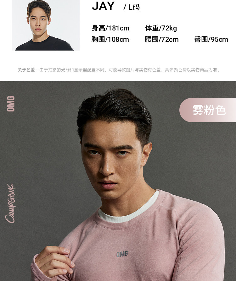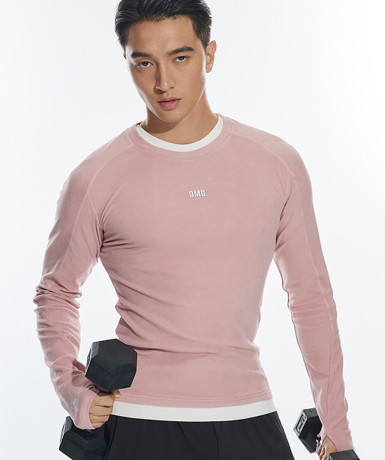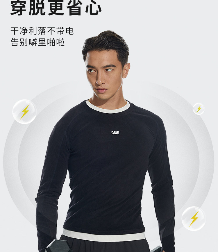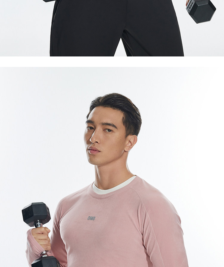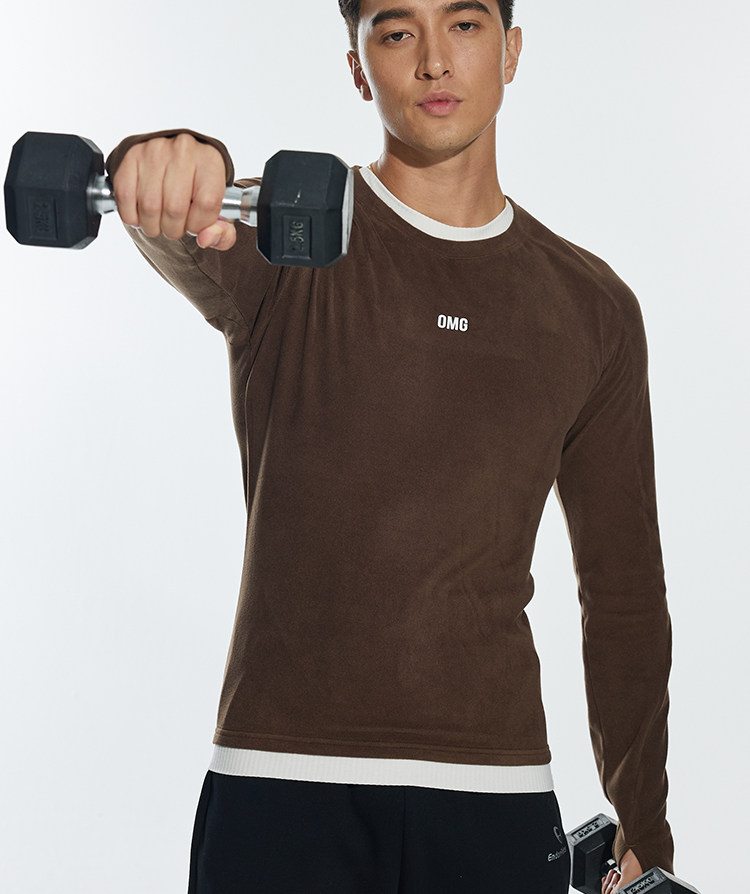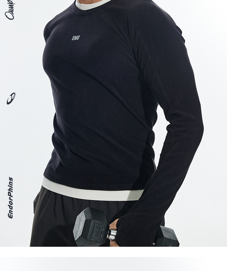 OMG运动 【假两件设计】加绒紧身衣长袖t恤男秋冬季打底衫健身服