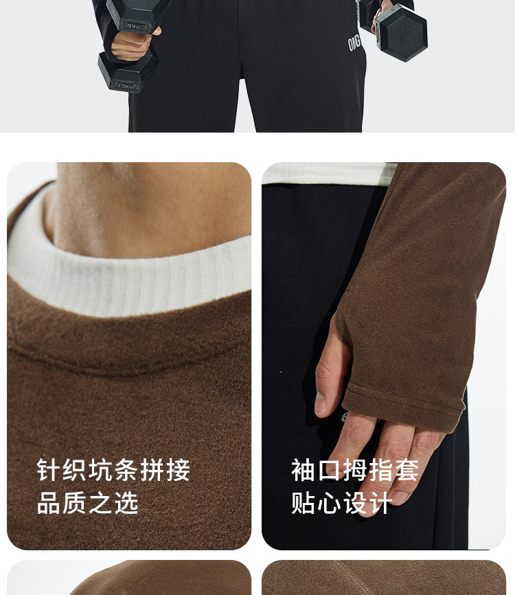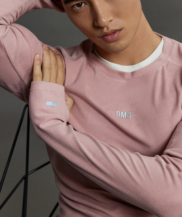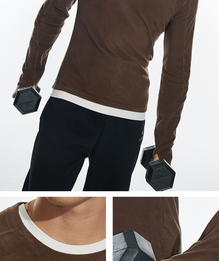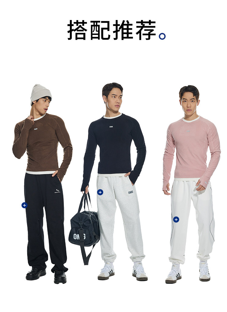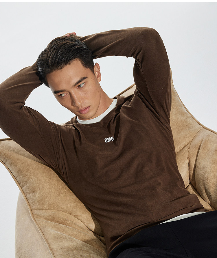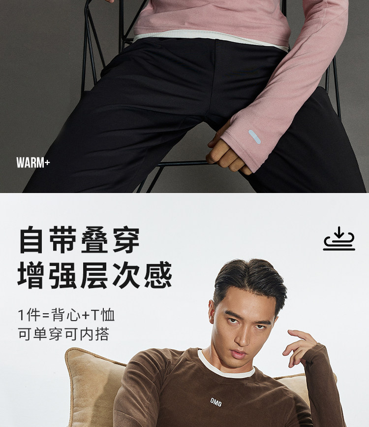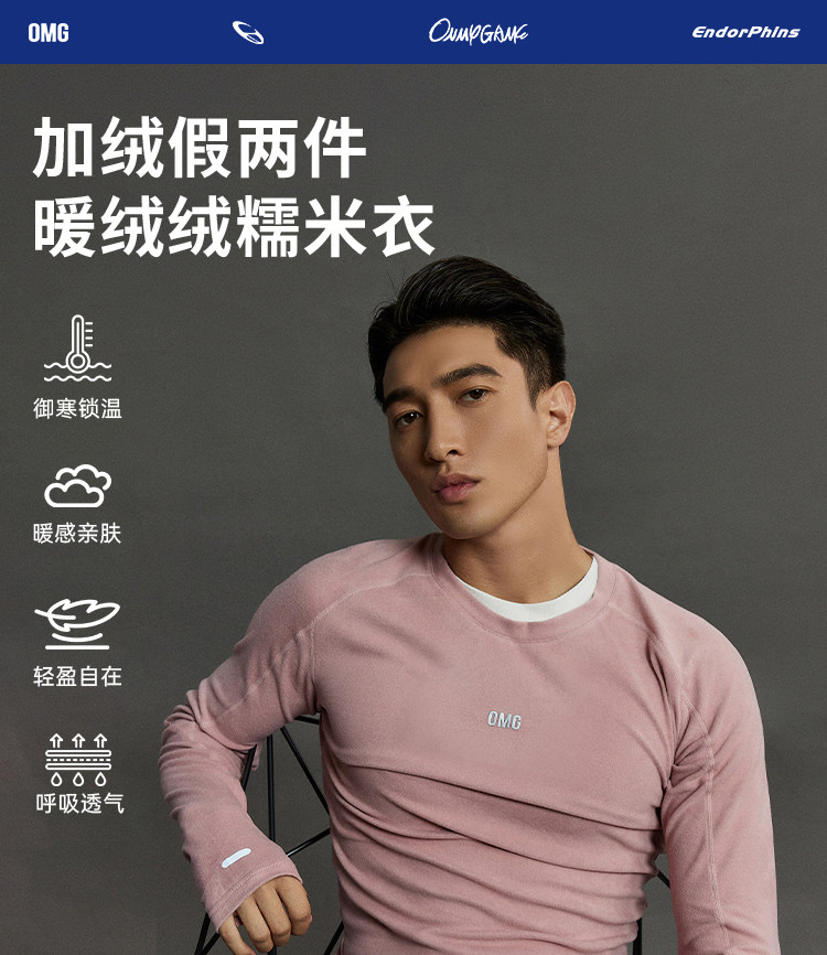 OMG运动 【假两件设计】加绒紧身衣长袖t恤男秋冬季打底衫健身服