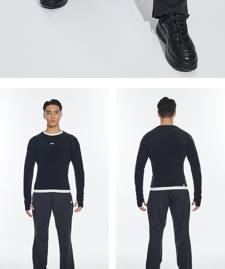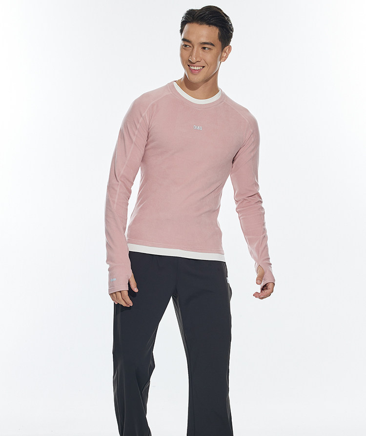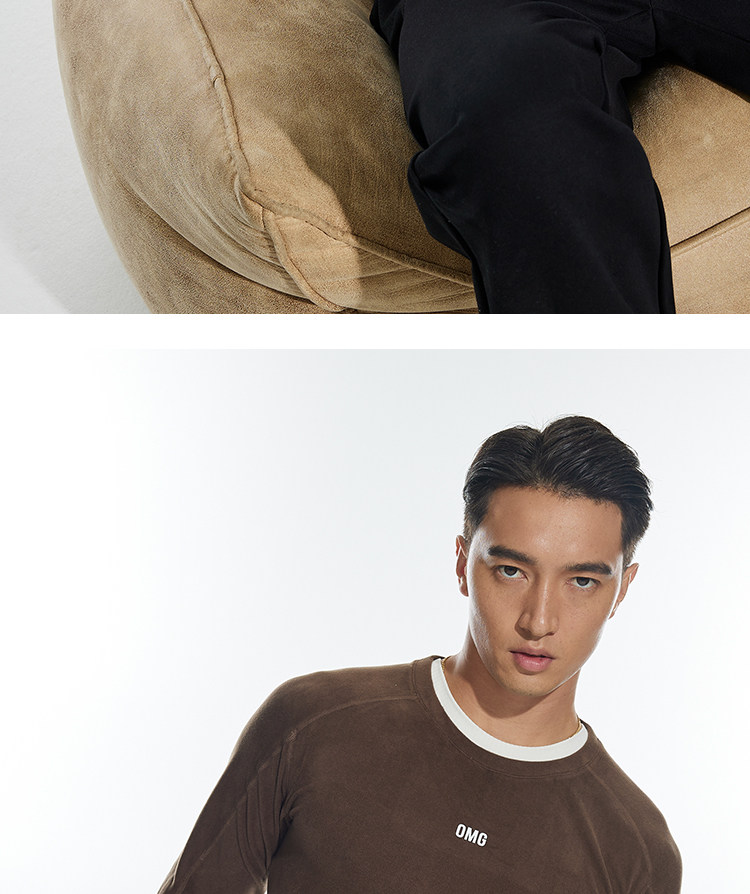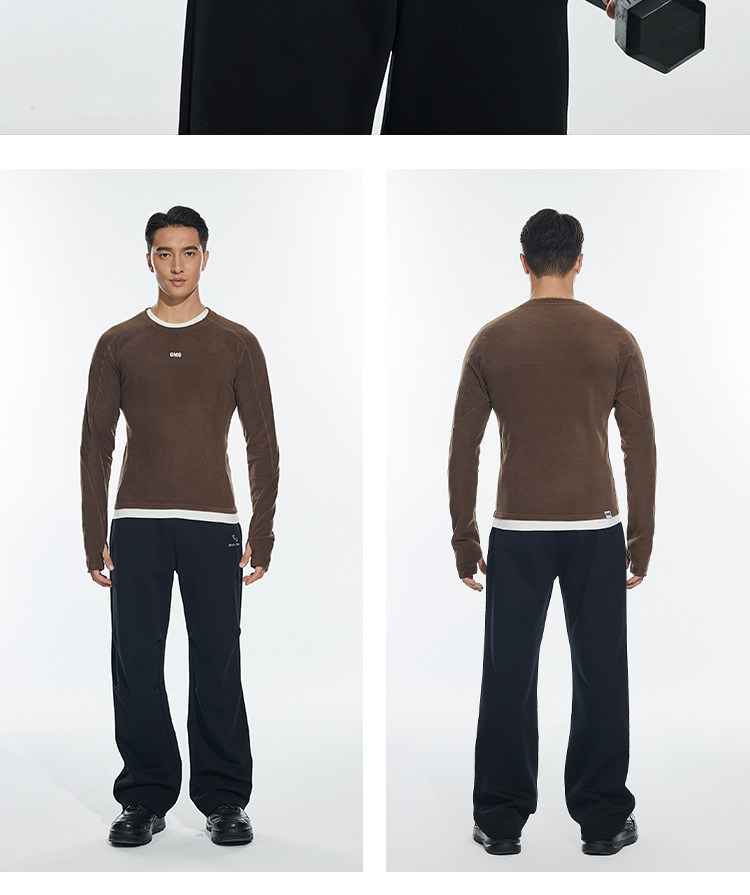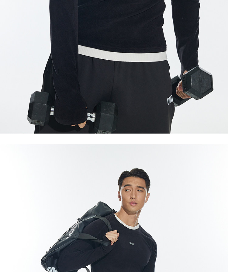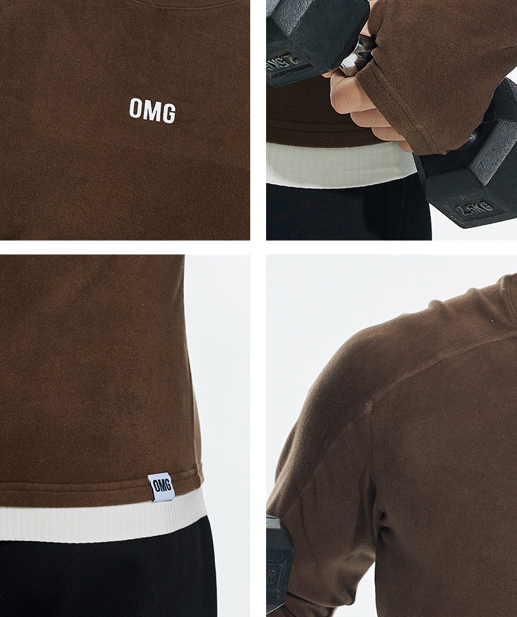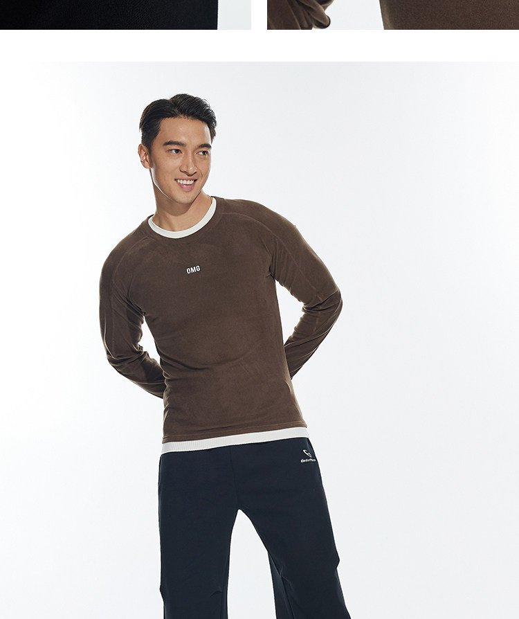 OMG运动 【假两件设计】加绒紧身衣长袖t恤男秋冬季打底衫健身服