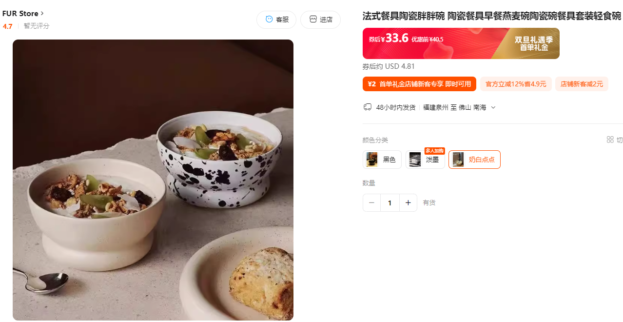 【2个】手工制作 高端品质 知名品牌爪兜 出口陶瓷沙拉碗 法式餐具陶瓷胖胖碗 轻食碗