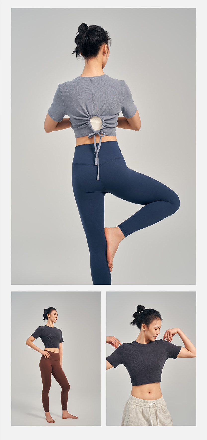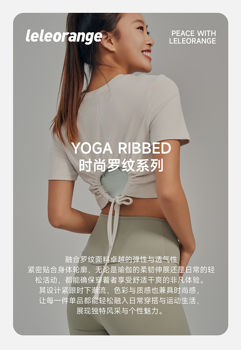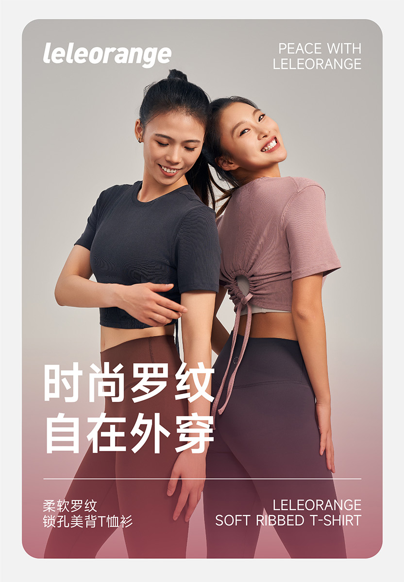 【leleorange】女士罗纹后背锁孔瑜伽T恤衫