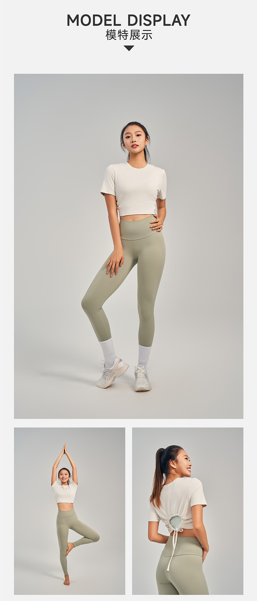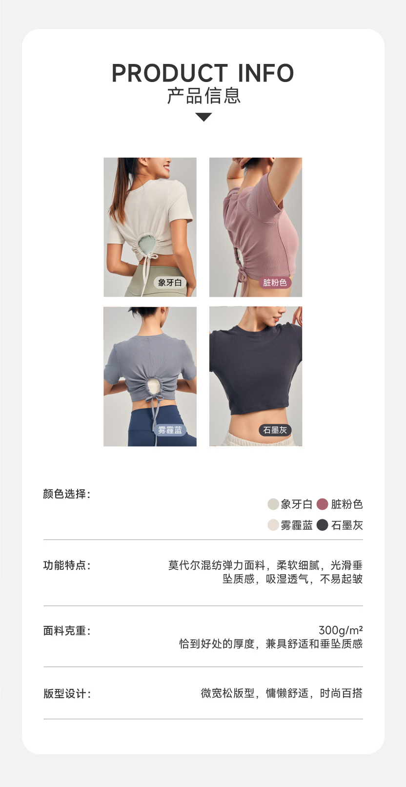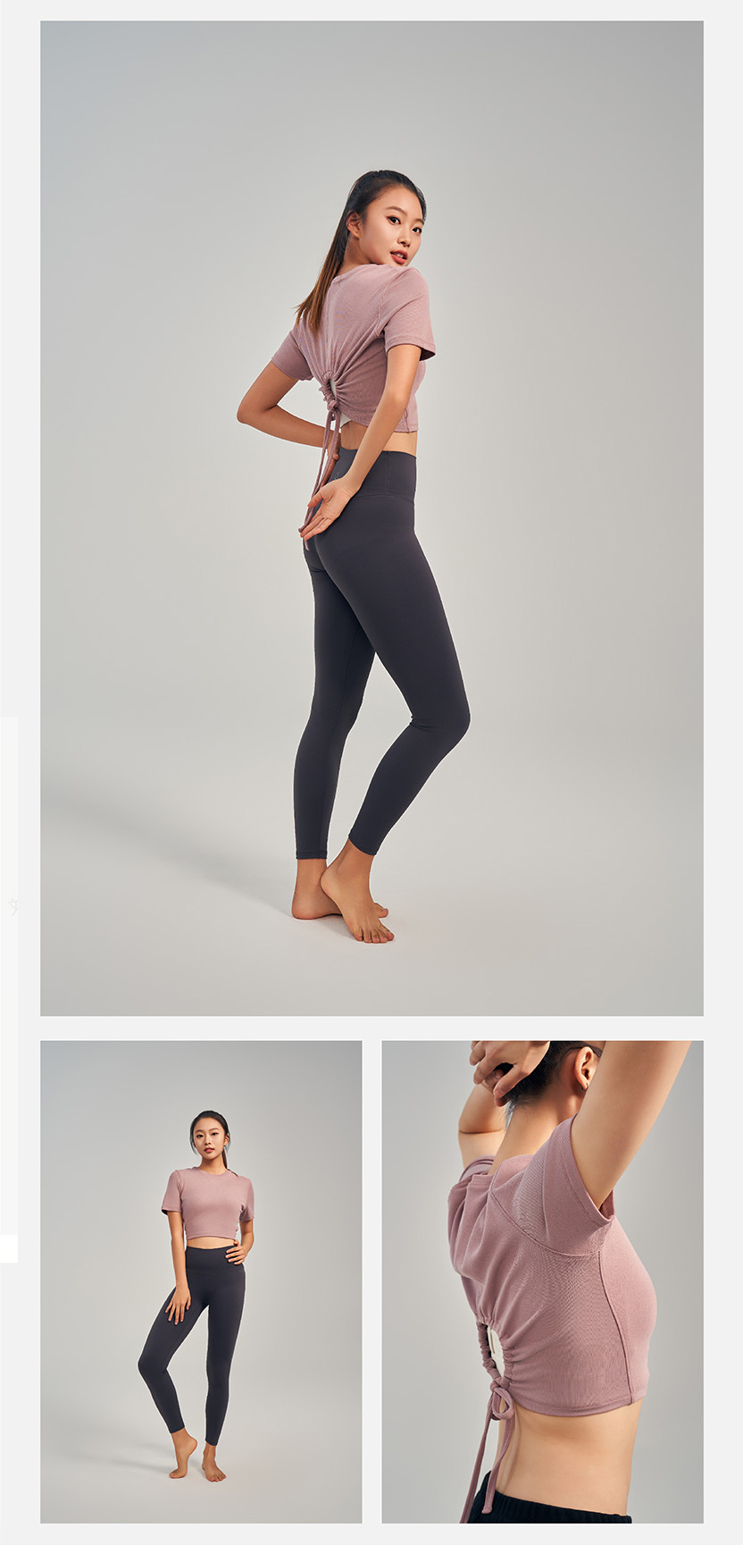 【leleorange】女士罗纹后背锁孔瑜伽T恤衫