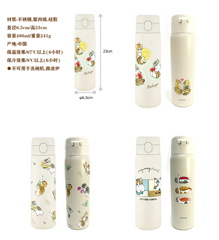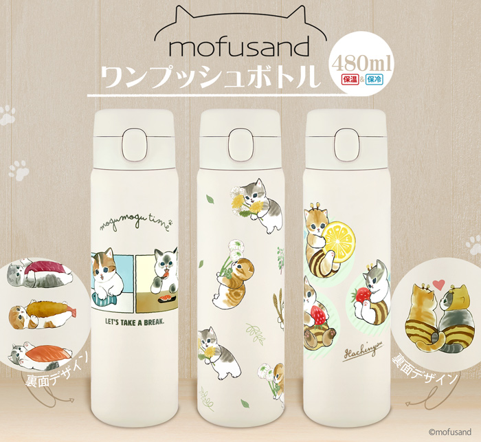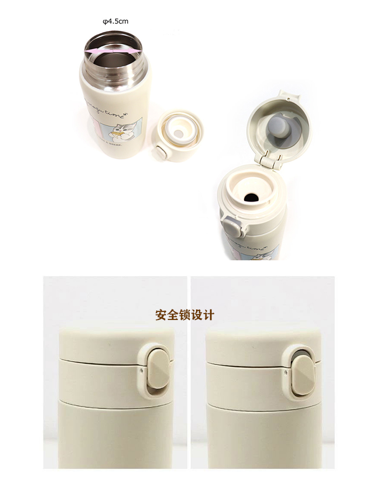 日本进口东亚金属mofusand 不锈钢一键式水瓶350ml(布偶)