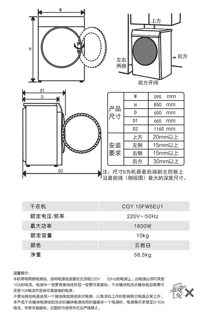 卡萨帝/烘干机/CGY 10FW5EU1 光年