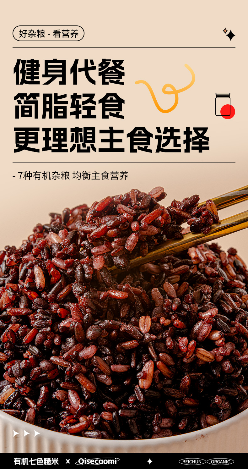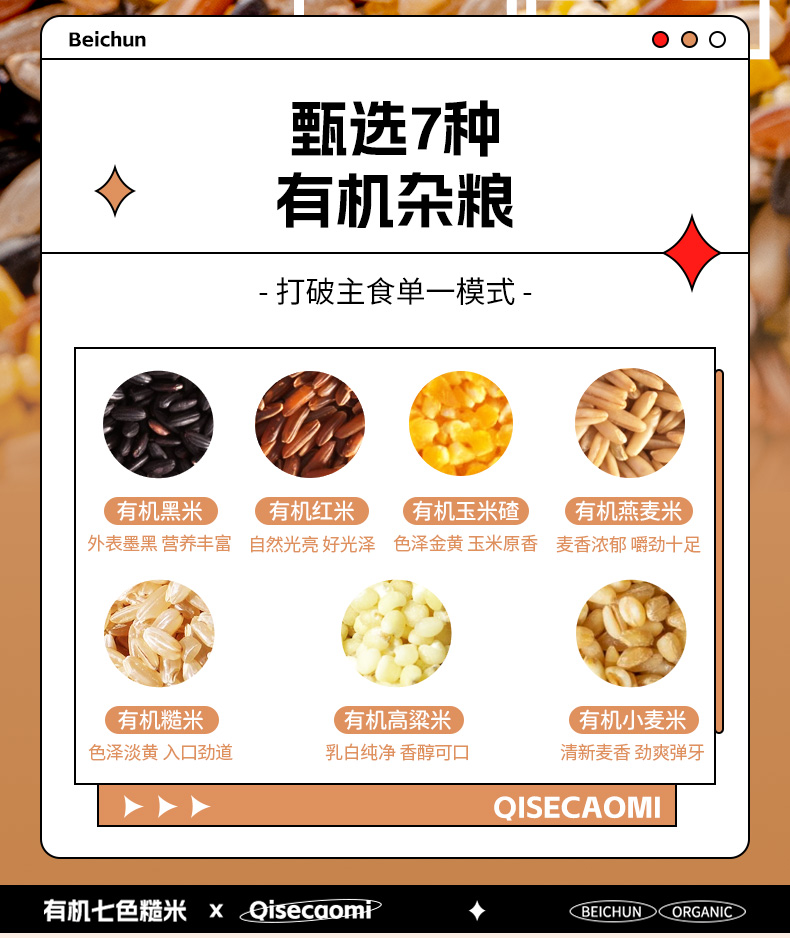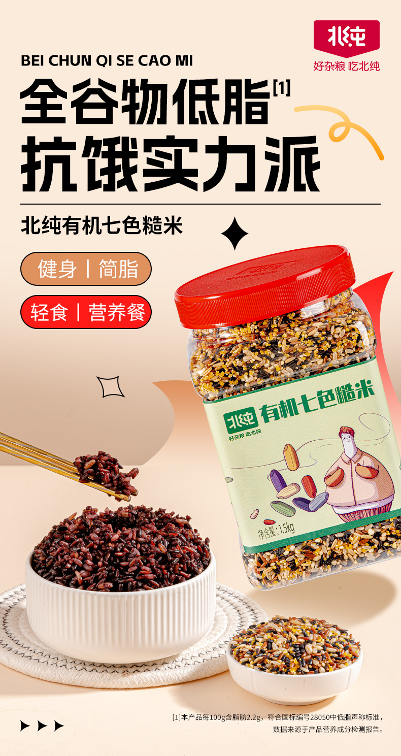 【北纯】有机七色糙米 1.5kg(多谷物 东北五谷杂粮饭 粗粮 可溯源)