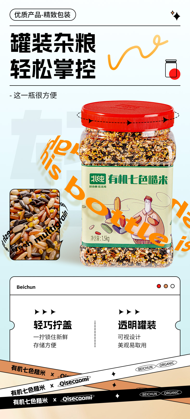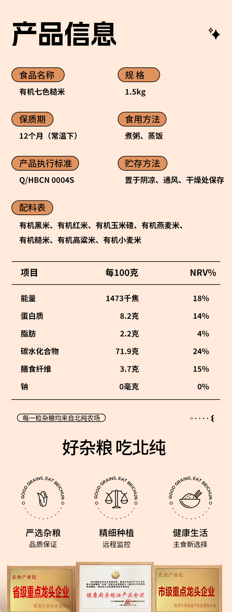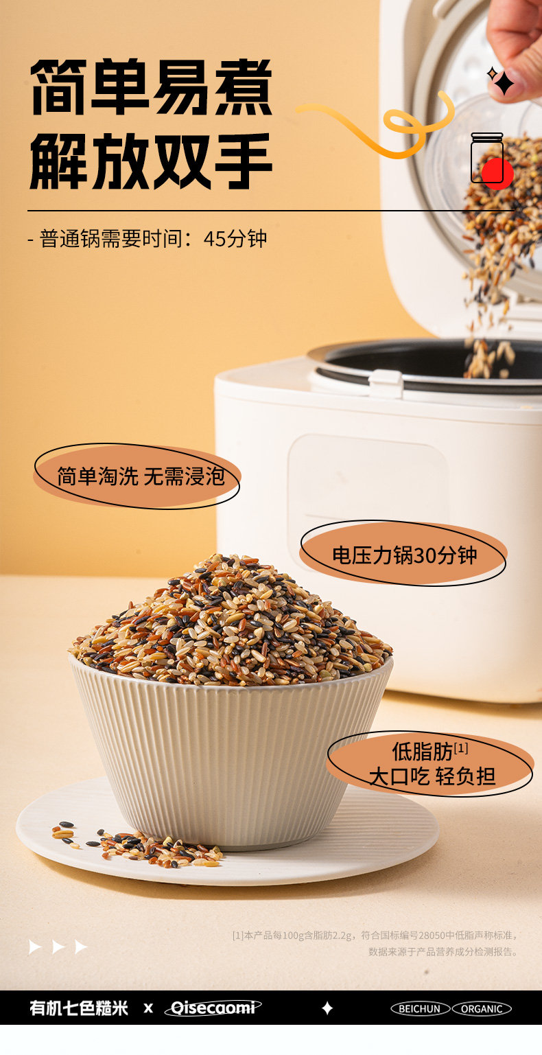【北纯】有机七色糙米 1.5kg(多谷物 东北五谷杂粮饭 粗粮 可溯源)