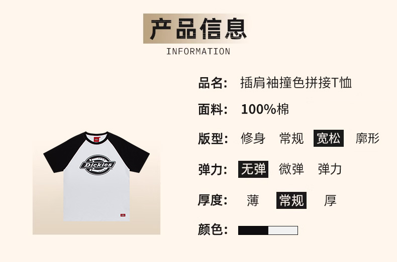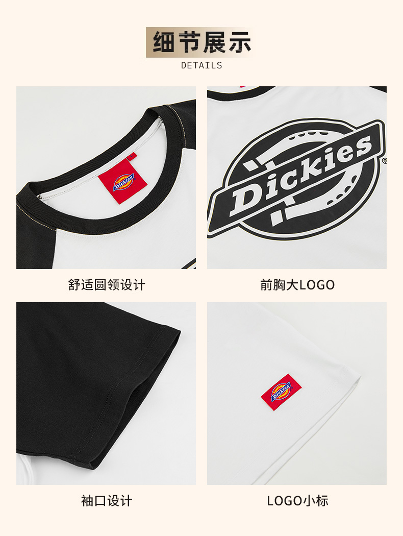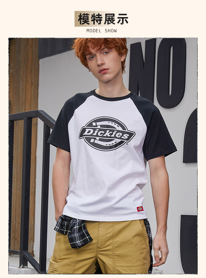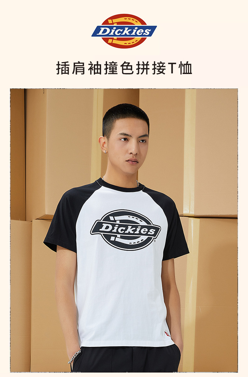 Dickies美式复古印花短袖t恤男休闲百搭拼色半袖圆领上衣情侣装DK008910