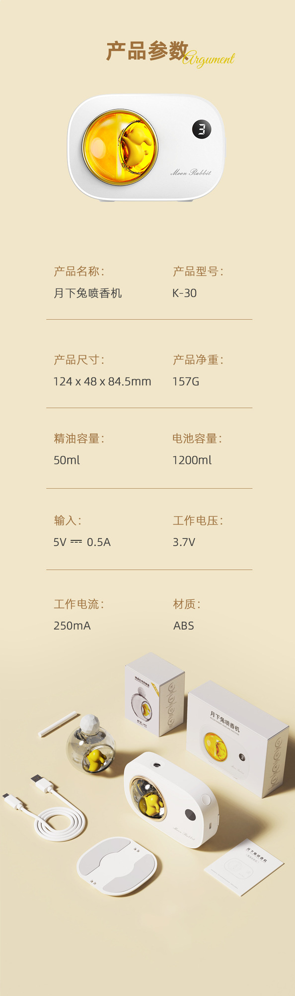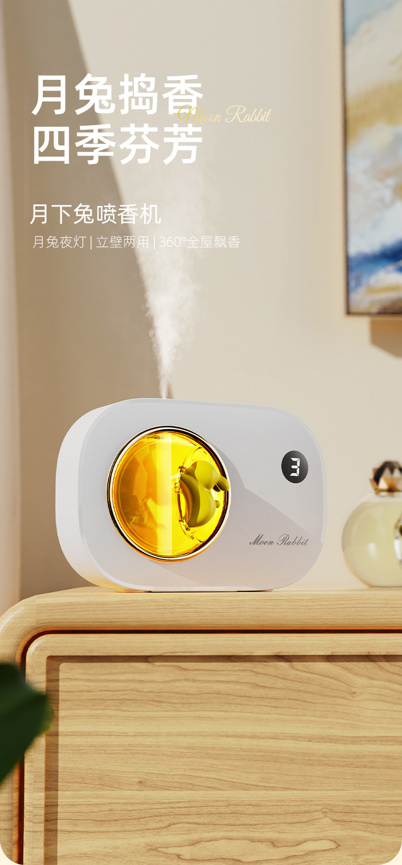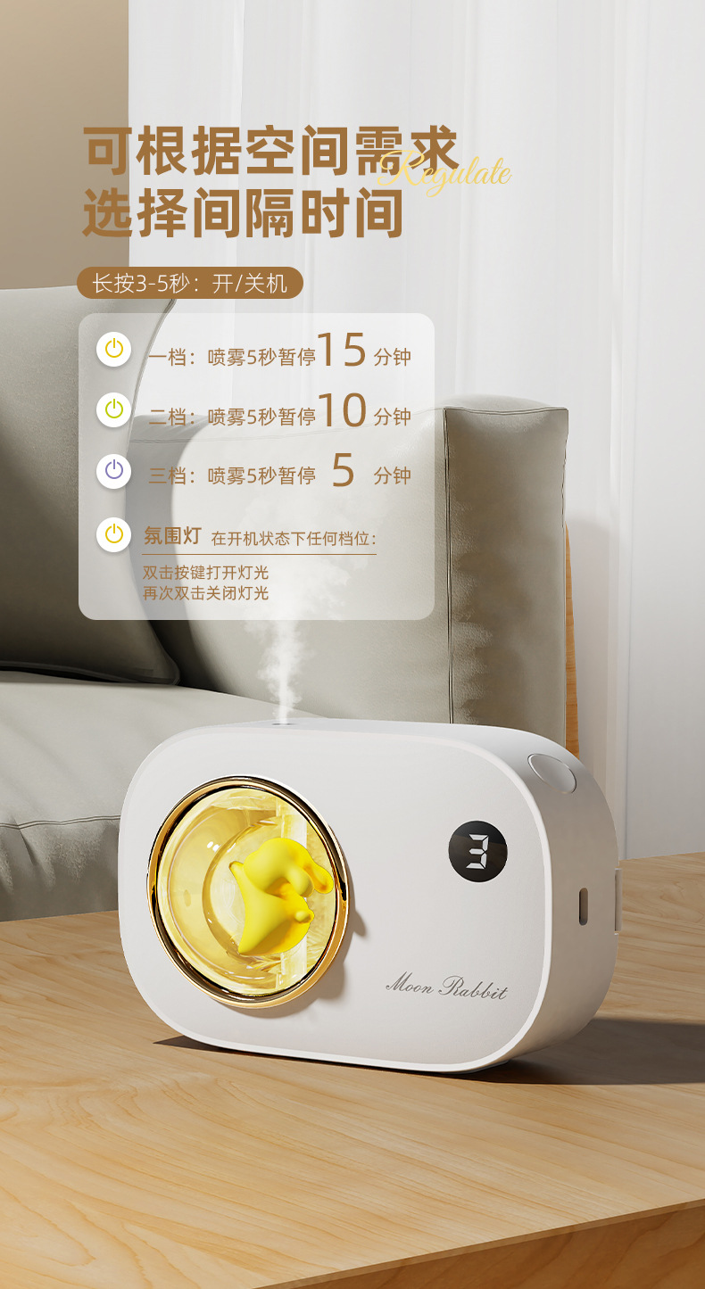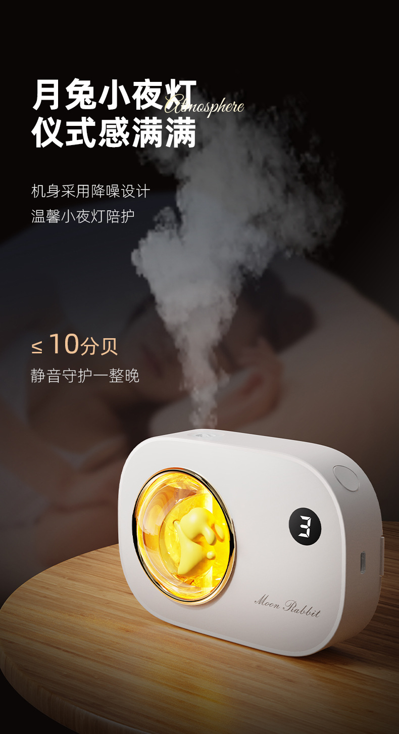 2025年新款 月下兔自动喷香机 带小夜灯 持久淡香 可充电 非常有情调和质感