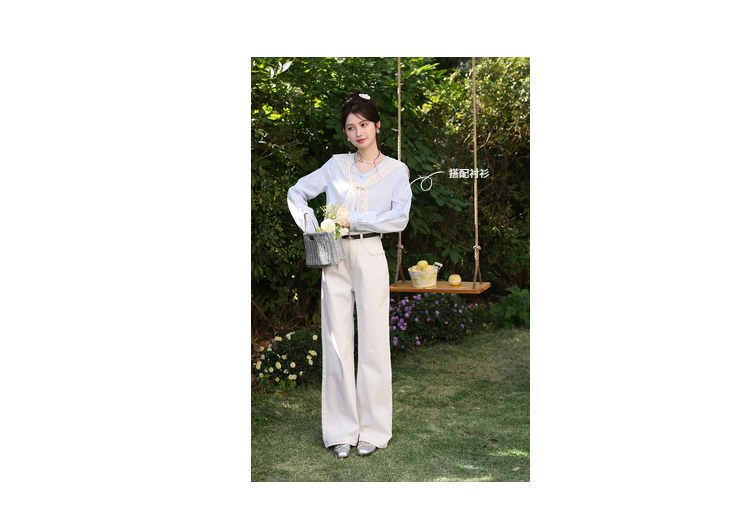鹿向南「纸刻书章」白色直筒牛仔裤女春季新款高腰宽松百搭长裤