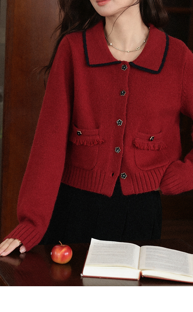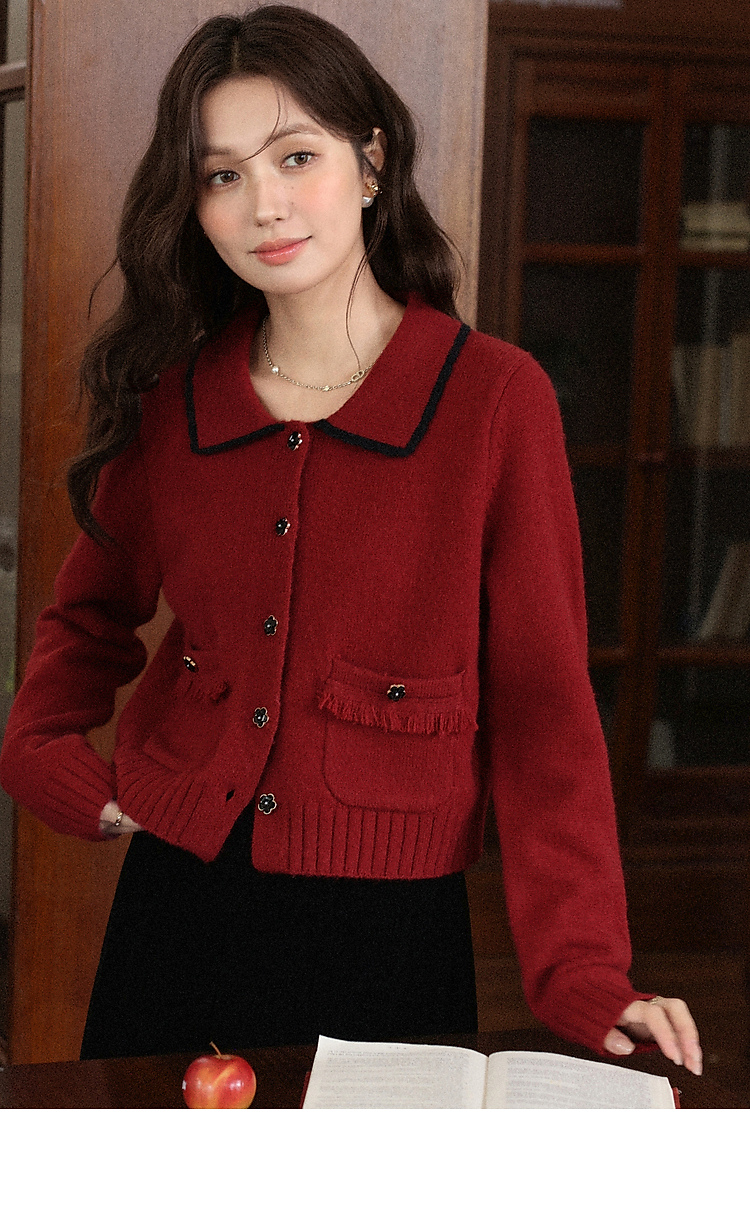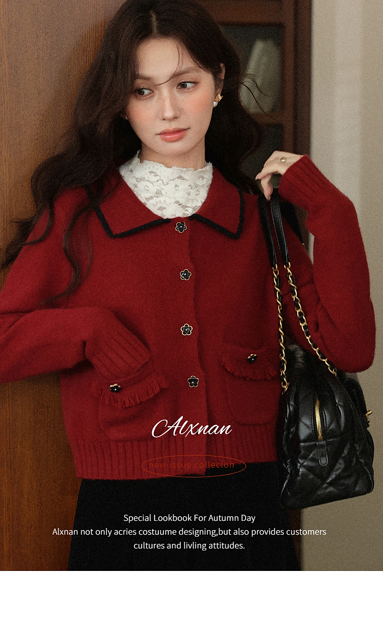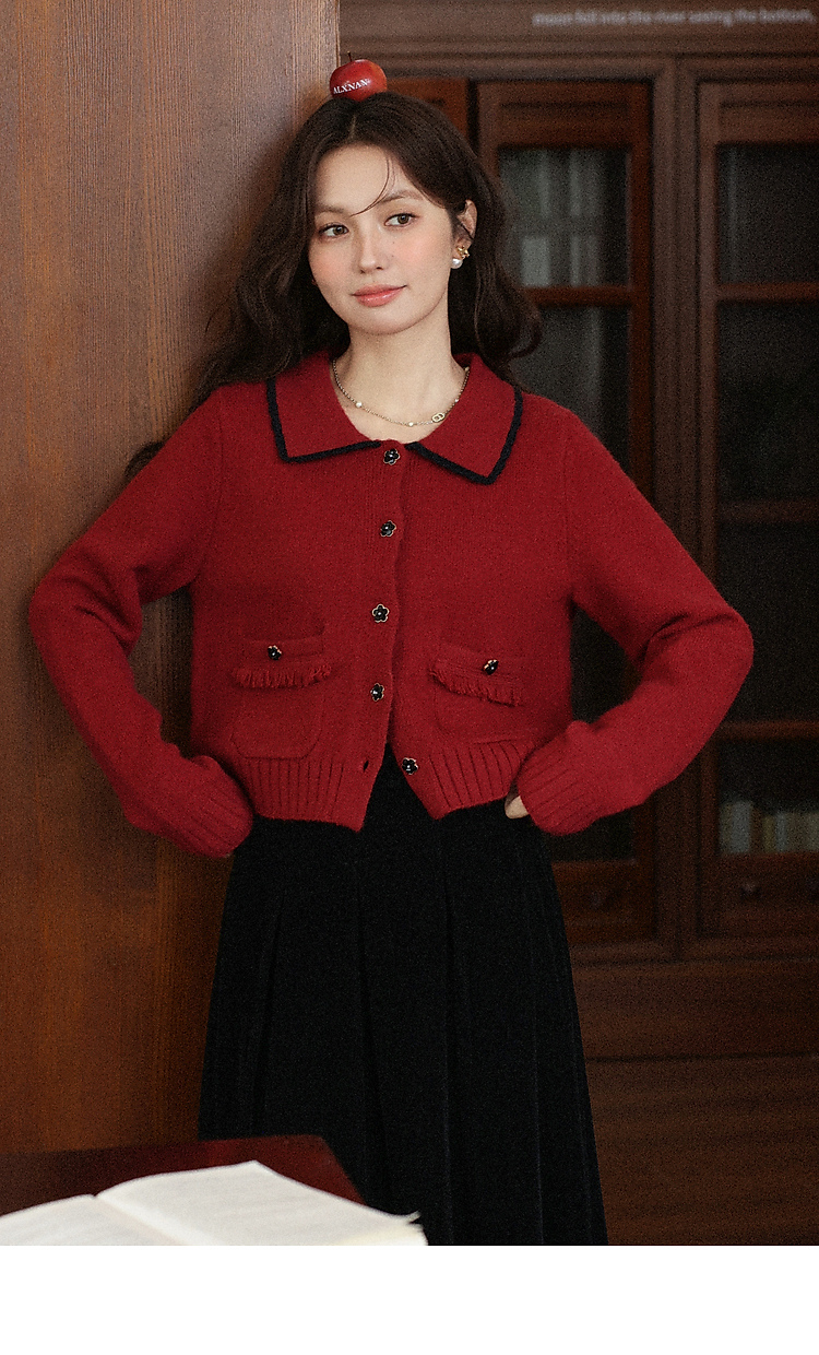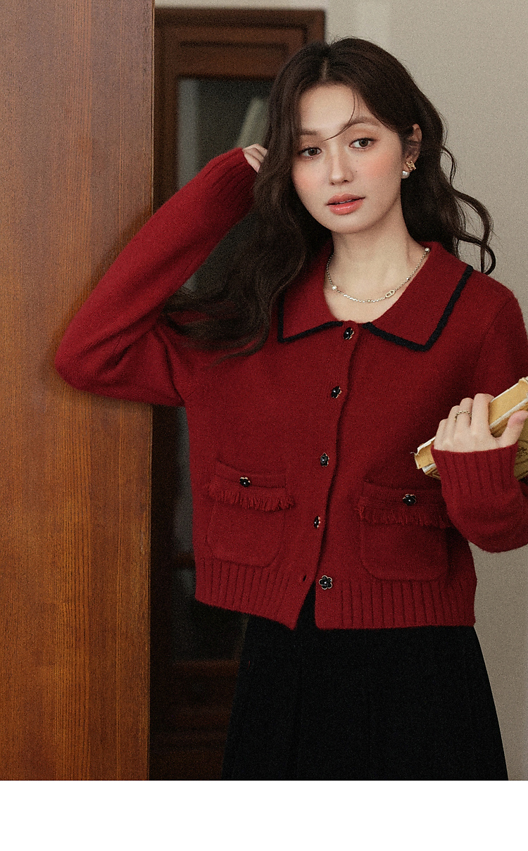 鹿向南「馥郁玫瑰」法式酒红色减龄显瘦毛衣开衫上衣开衫外套女秋