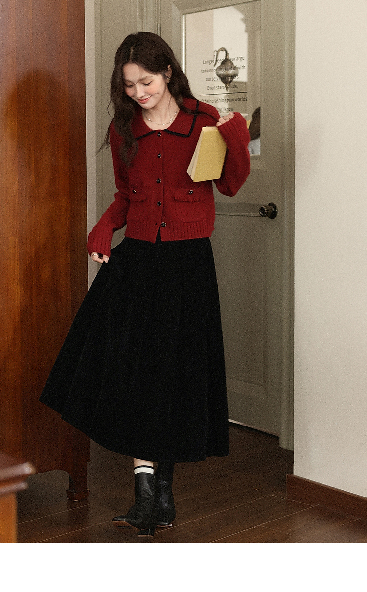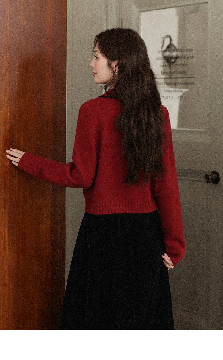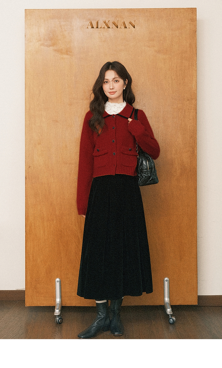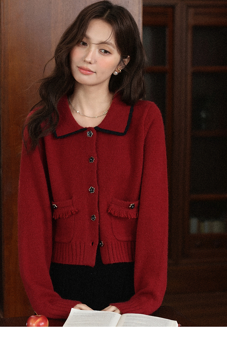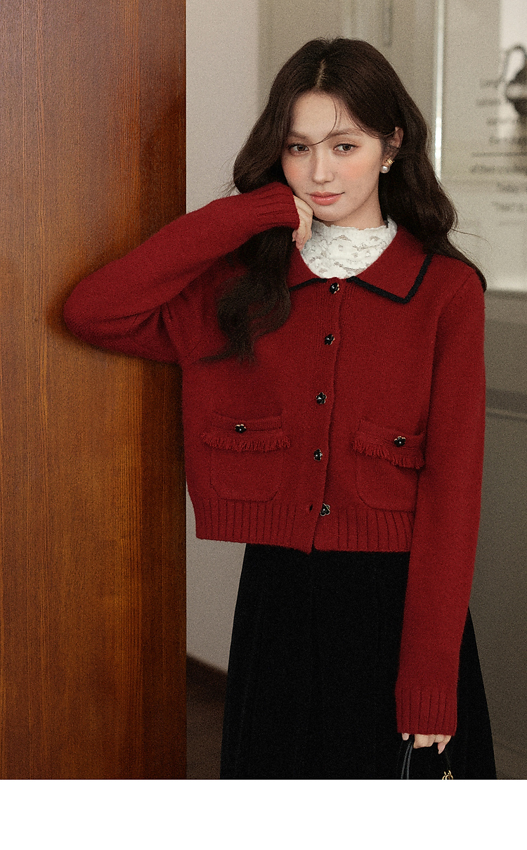 鹿向南「馥郁玫瑰」法式酒红色减龄显瘦毛衣开衫上衣开衫外套女秋