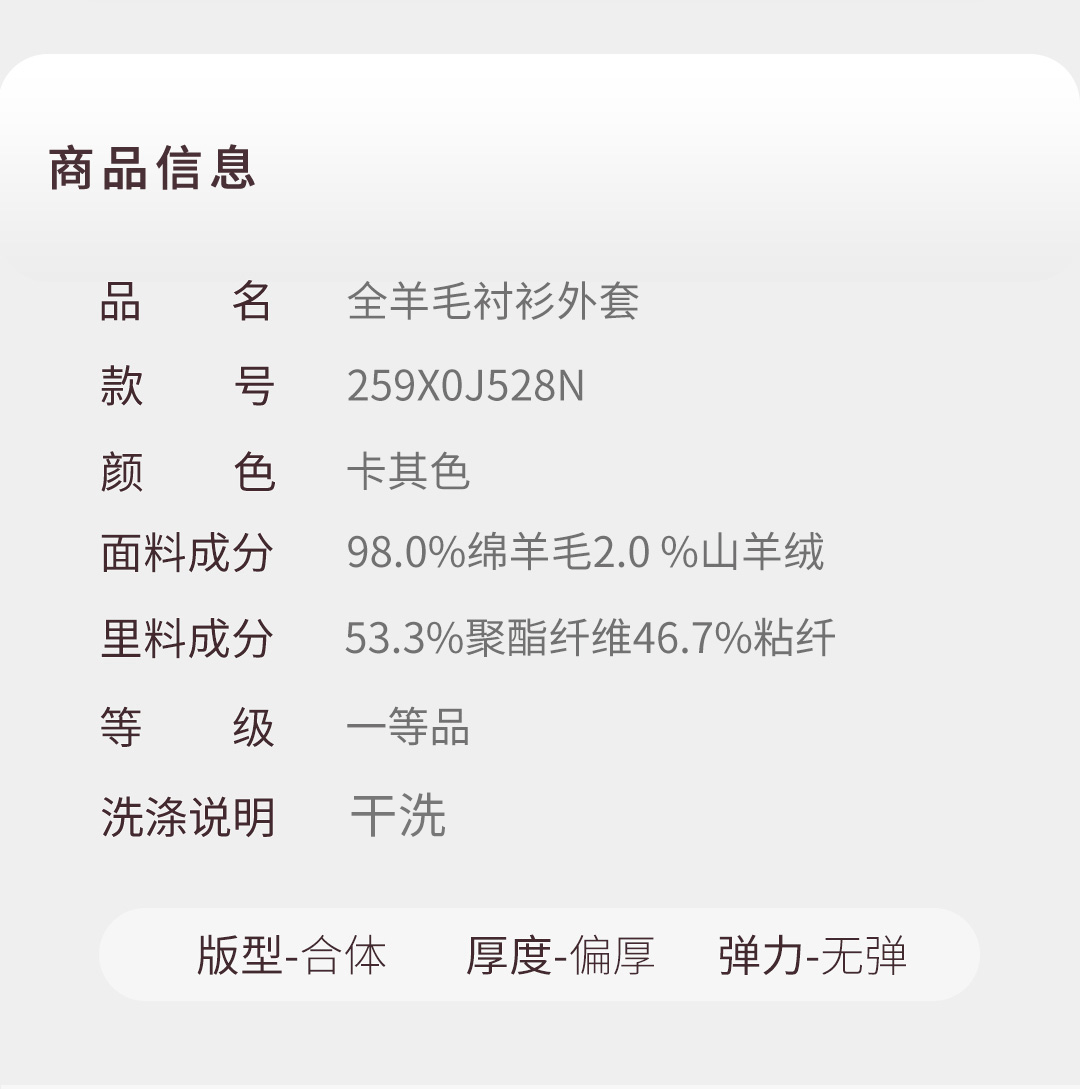 【大师7号】秋冬品质休闲全羊毛衬衫外套259X0J528N[门店专款]