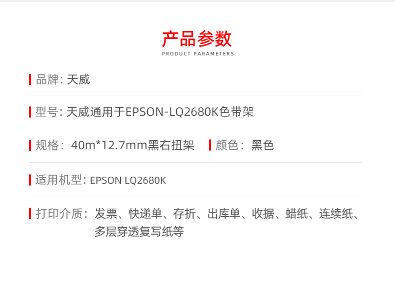 天威 LQ2680K色带 适用爱普生EPSON LQ-2680K S015510 打印机色带架